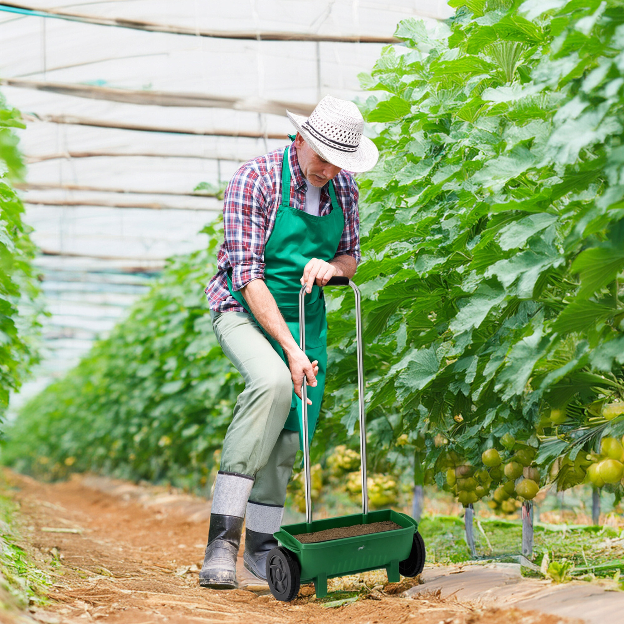 Ein Streuwagen ist ein praktischer Helfer für das gleichmäßige Ausbringen von Samen, Düngemitteln und anderen Schüttgütern.Vollständige Beschreibung