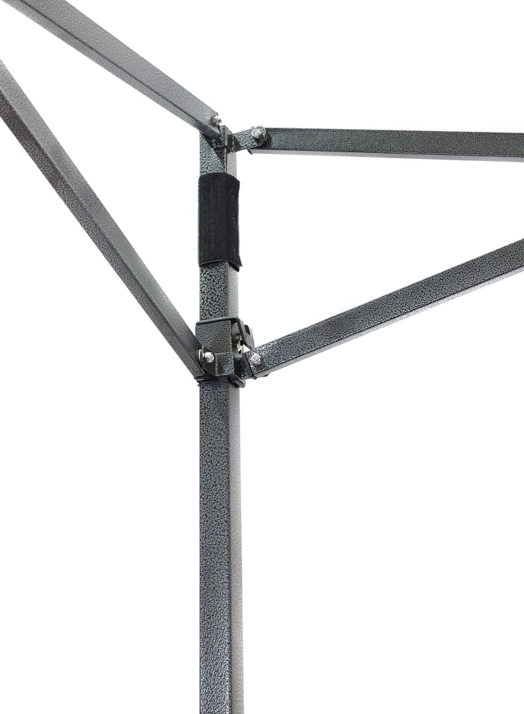 Die Konstruktion des Standes besteht aus stabilen, pulverbeschichteten Metallprofilen in quadratischer Form.