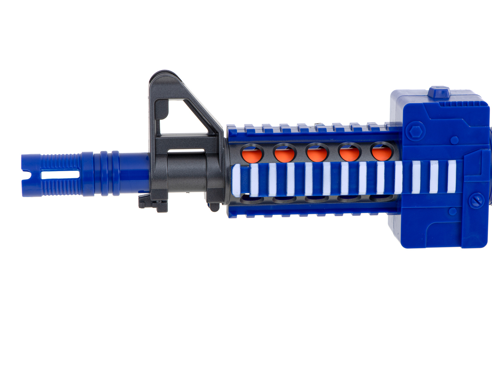 Alle Jungen werden das Blaze Storm Gewehr lieben. Das Gewehr hat alles, was man für einen erfolgreichen Kampf und den anschließenden Sieg braucht. Das Gewehr wird alle Fans von Computerspielen begeistern, die ihre Computer-Kampferfahrung in die reale Welt übertragen können. Die Farben der Texturen und Reliefs erinnern an die Gewehre aus Computerspielen und machen es zu einem attraktiven Spielzeug für Kinder jeden Alters. Es ist mit einem abnehmbaren und beweglichen Visier ausgestattet.