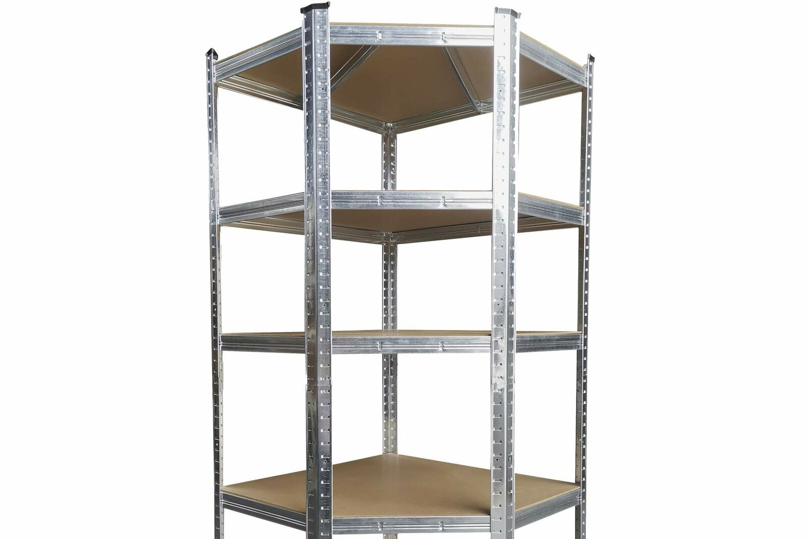 Der Rahmen aus verzinktem Stahl in Silberfarbe garantiert Stabilität und eine hohe Tragfähigkeit von ca. 875 kg (pro Regalboden ca. 175 kg).