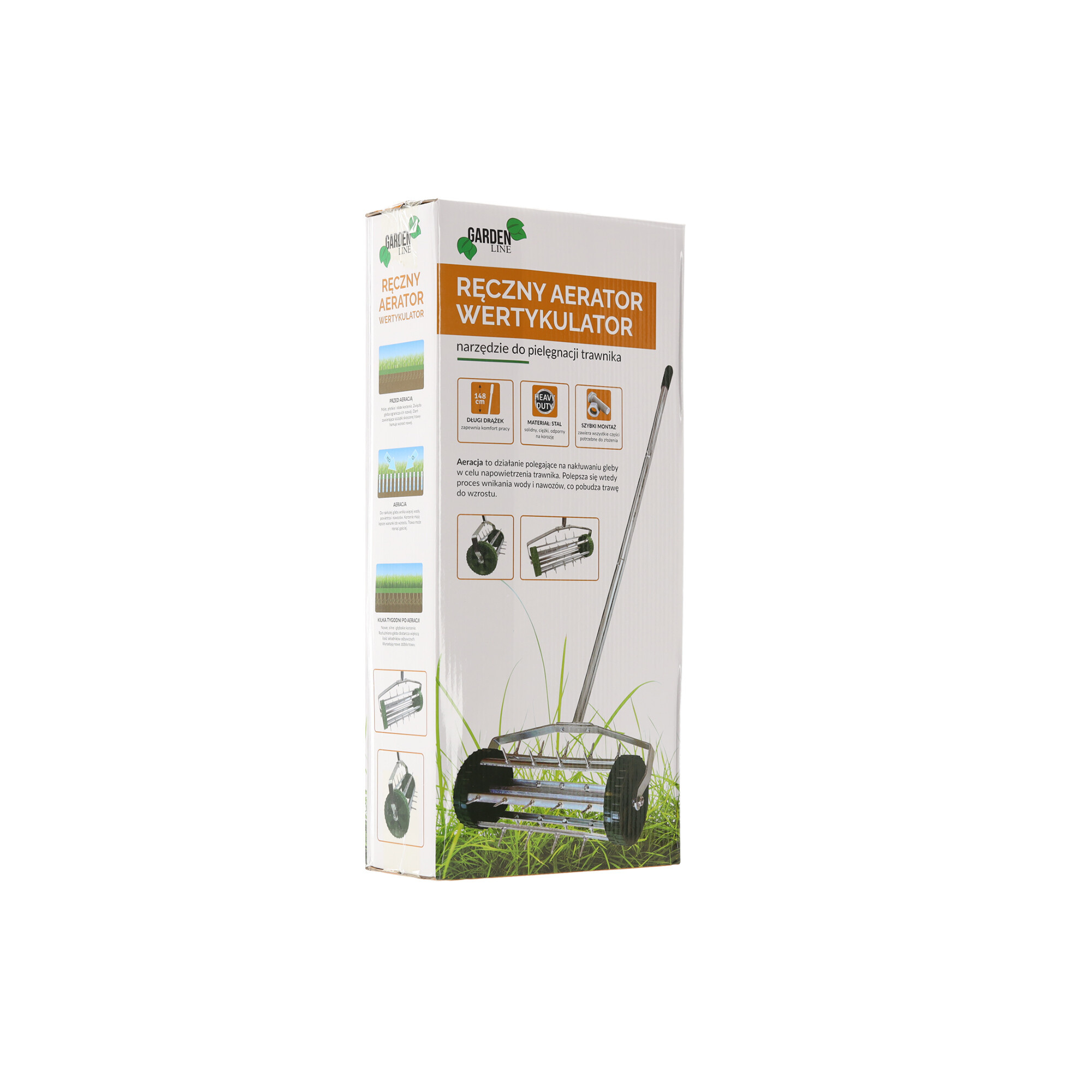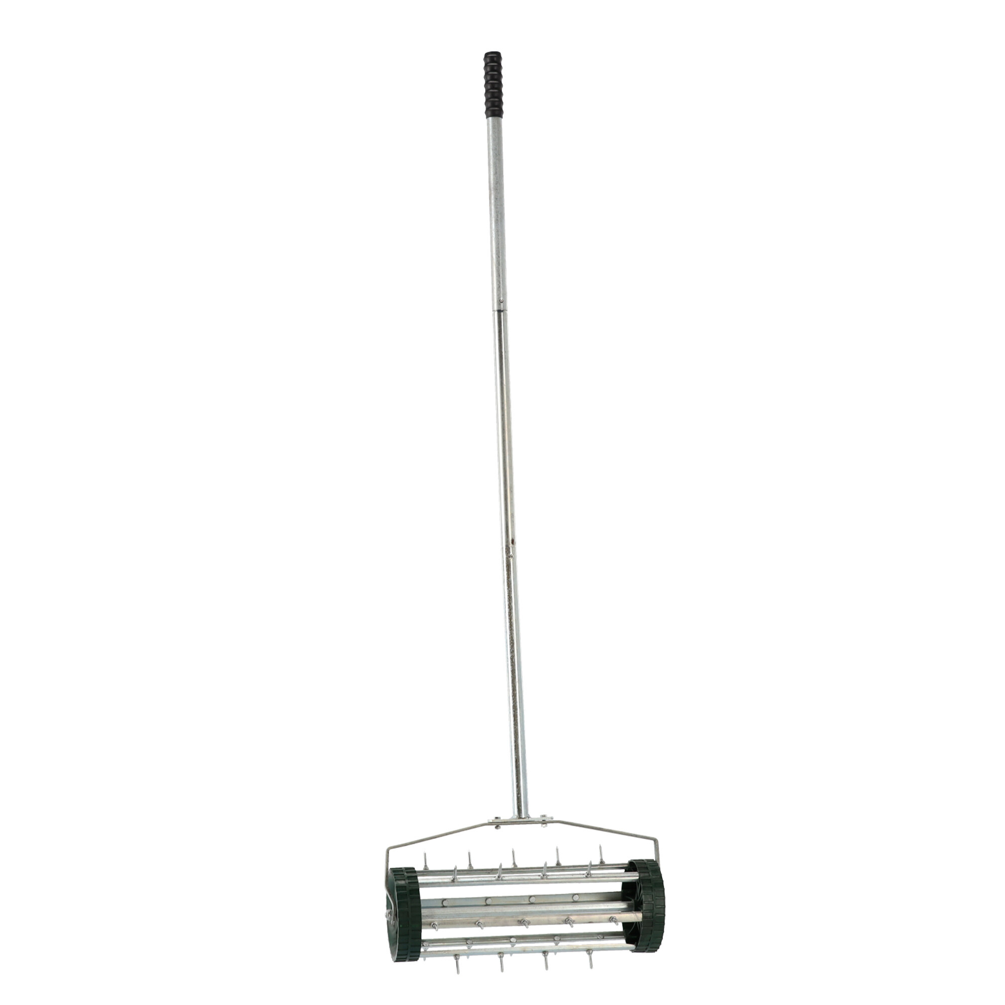 Der Griff kann in 3 Positionen eingestellt werden und die Walze hat auch drehbare Nägel zum Eingraben in den Boden. Hergestellt aus verzinktem Metallrohr und Kunststoff, ist es ein großartiges Werkzeug, um Ihren Rasen optimal zu nutzen.