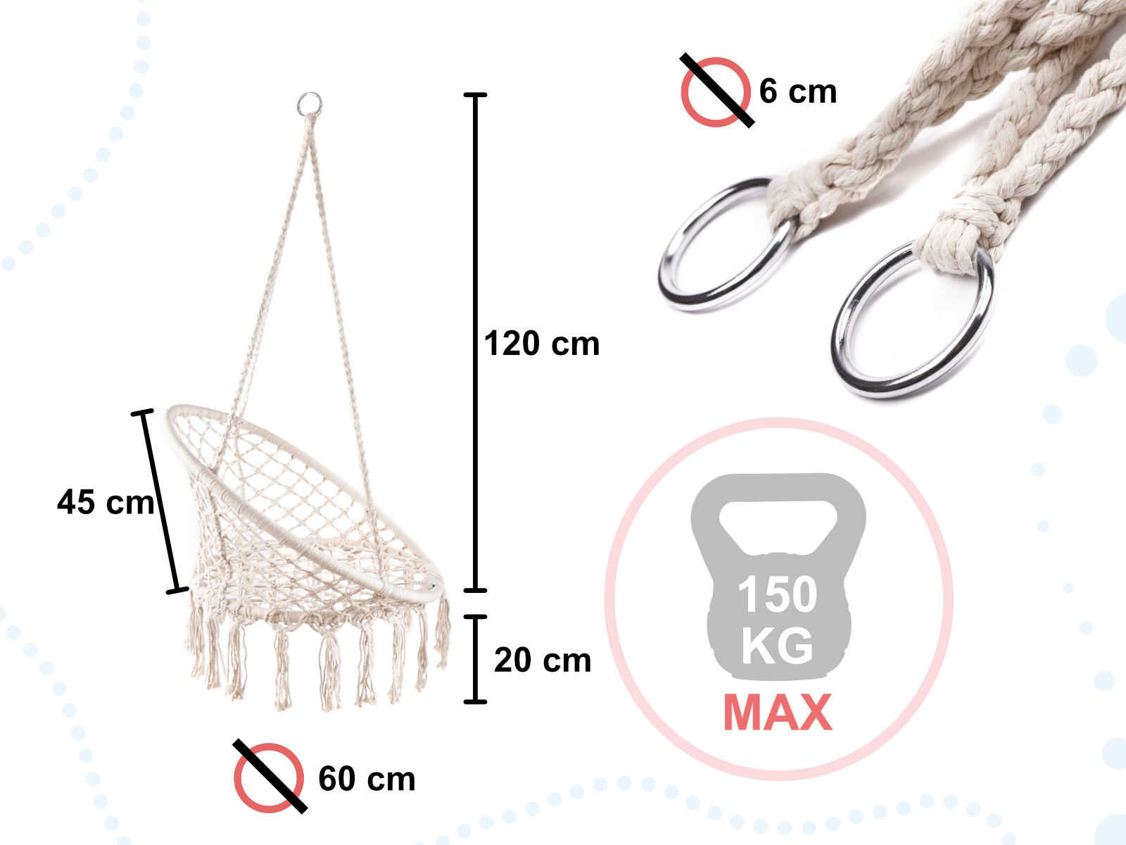 Starke Seilemit speziellem Geflecht und Metallrahmen sorgen für Sicherheit beim Ausruhen. Sie können sicher sein, dass Ihre Schaukel lange halten wird.