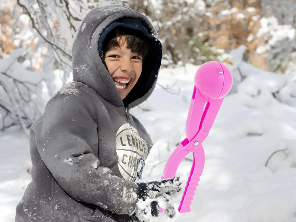 Es dauert nur 2 Sekunden, um den perfekten Schneeball zu schaffen. Schnee schaufeln, festziehen und fertig.