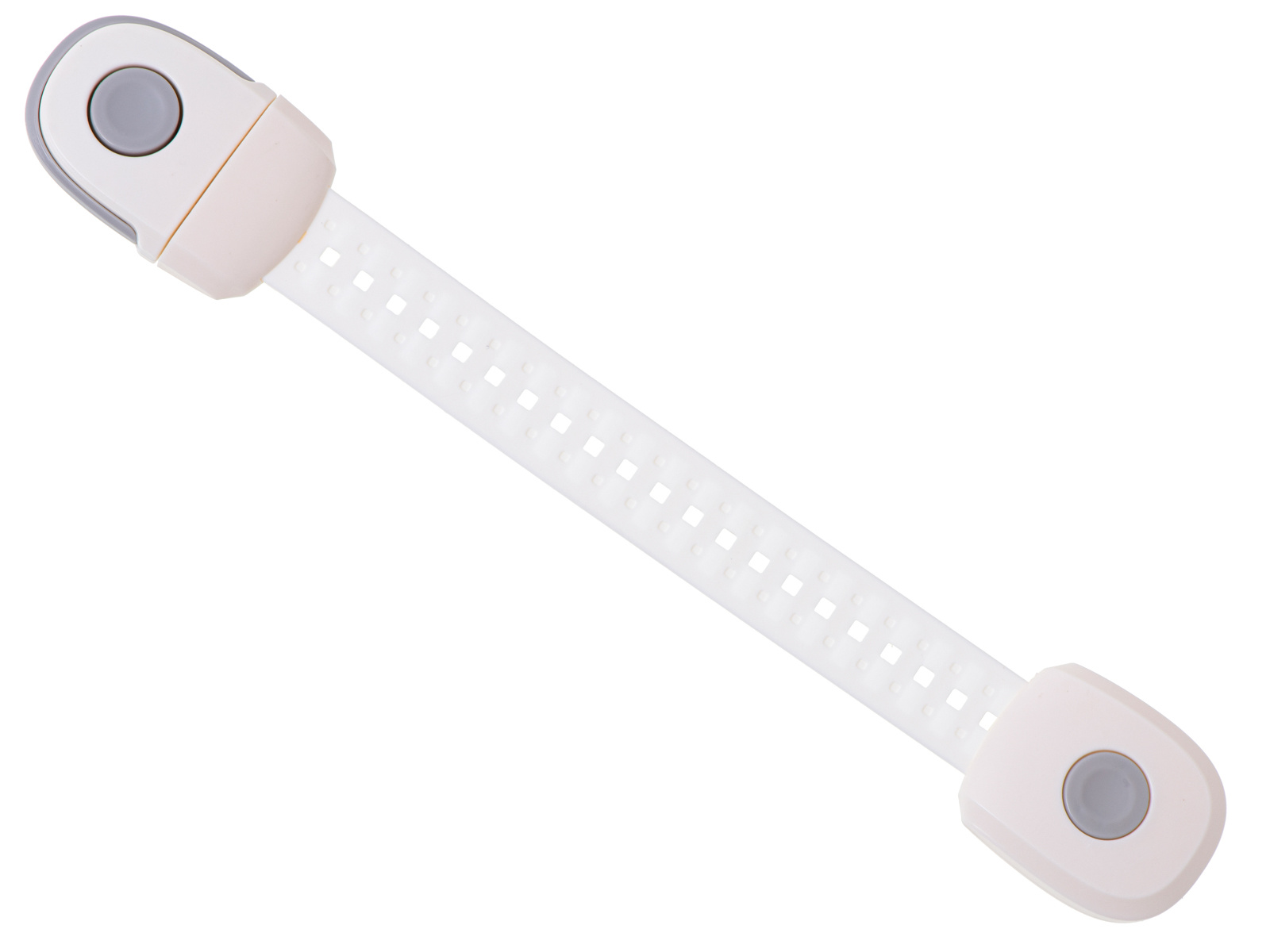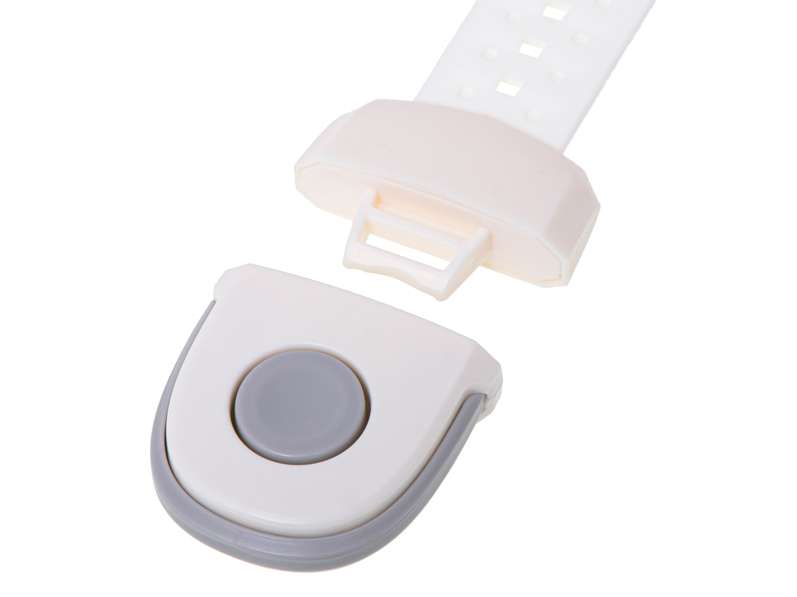 - Die Sicherheitsvorrichtung wird durch einen Knopf an einem Ende geöffnet.