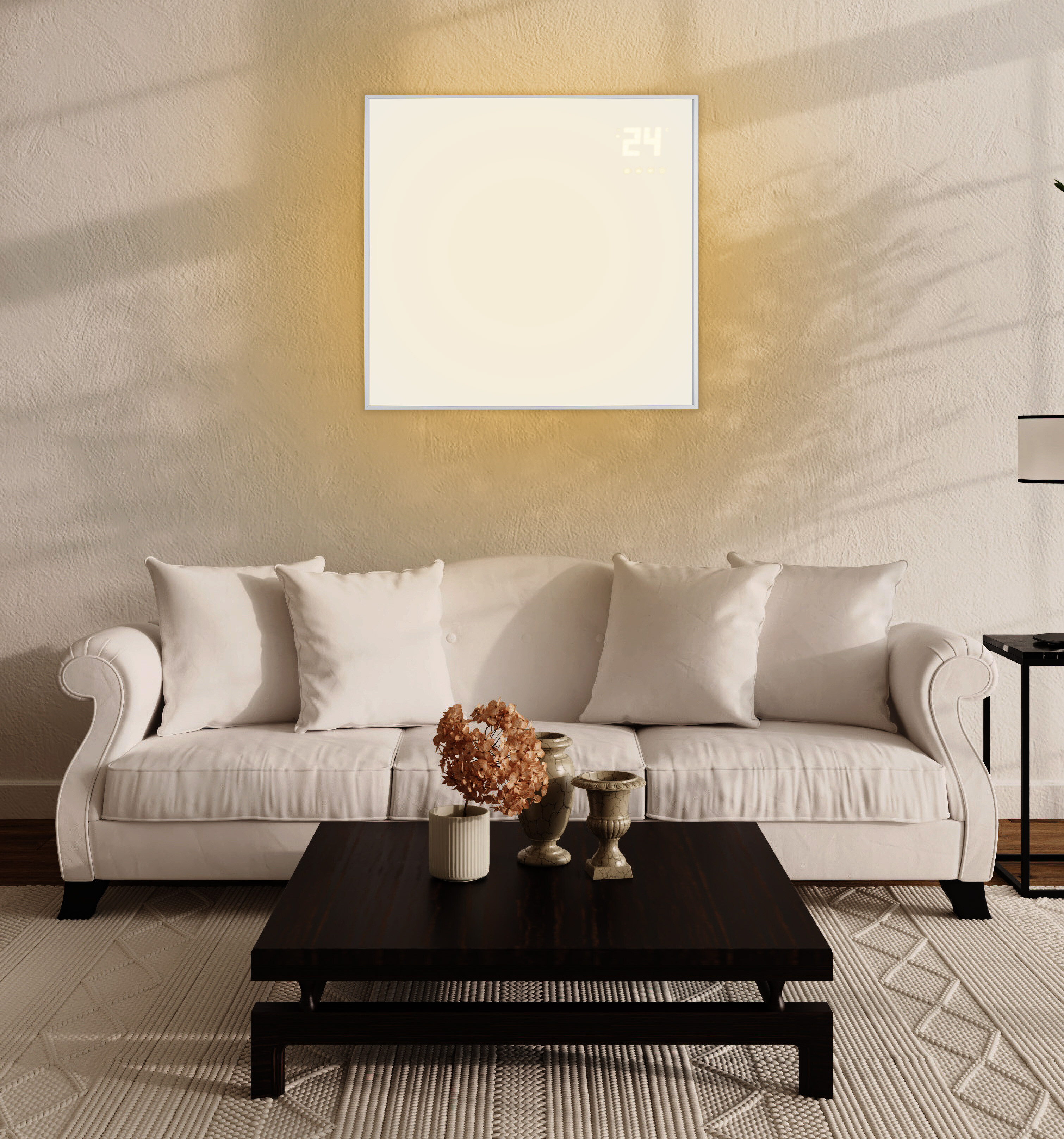 Das Heizpaneel ist mit einem übersichtlichen LCD-Display ausgestattet, das eine einfache Einstellung der gewünschten Temperatur ermöglicht.