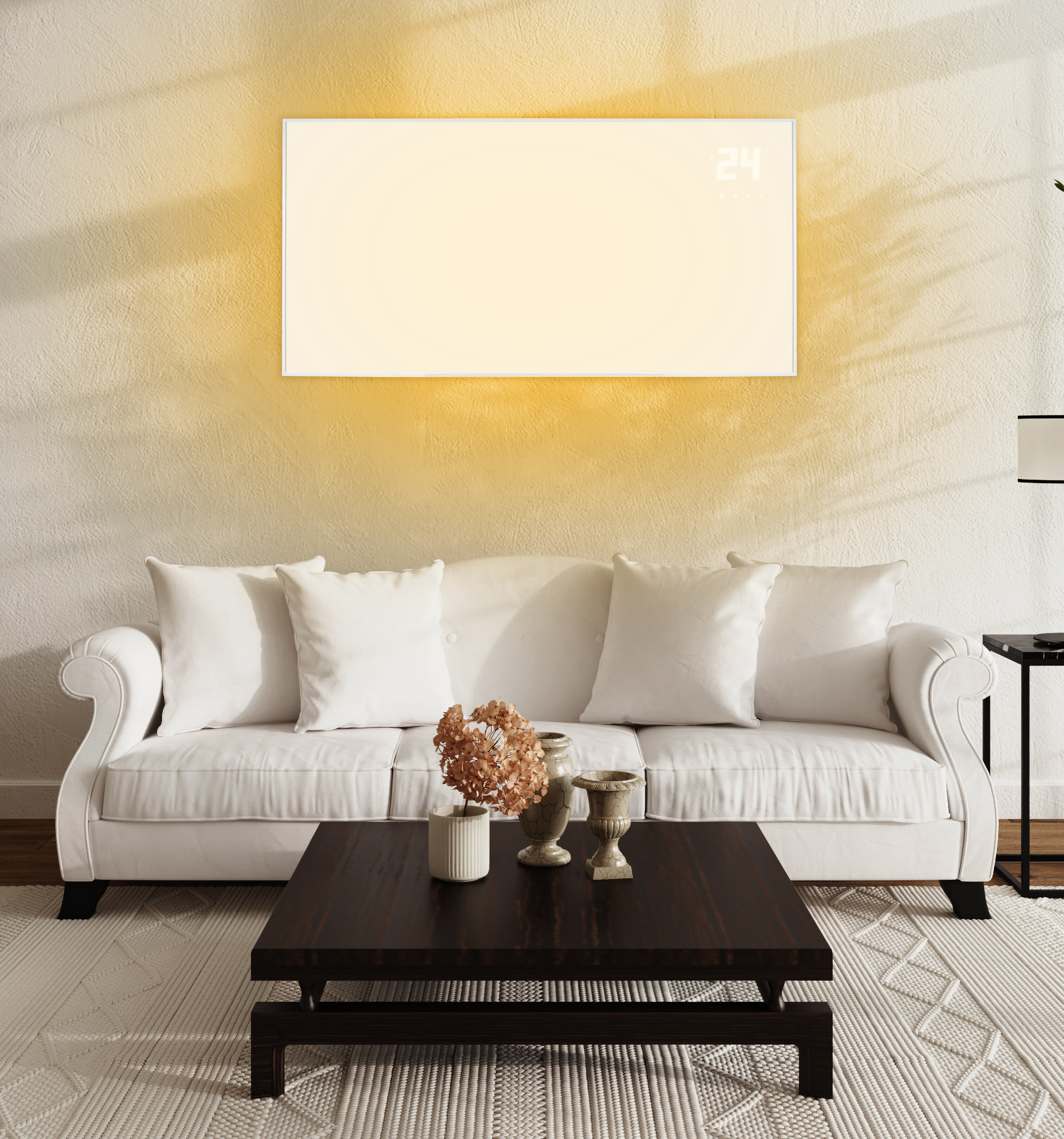 Das Heizpaneel ist mit einem übersichtlichen LCD-Display ausgestattet, das eine einfache Einstellung der gewünschten Temperatur ermöglicht.