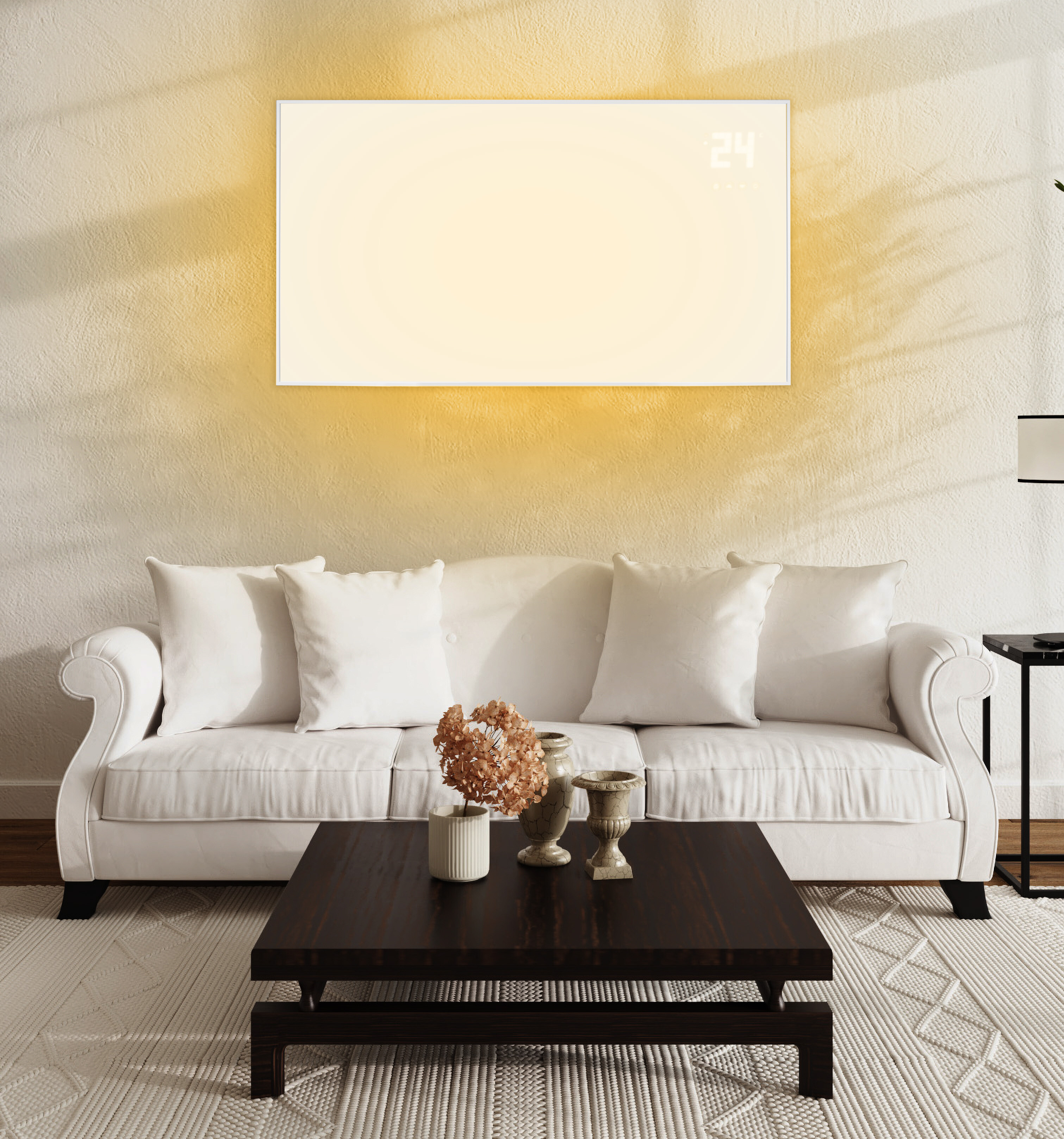 Das Heizpaneel ist mit einem übersichtlichen LCD-Display ausgestattet, das eine einfache Einstellung der gewünschten Temperatur ermöglicht.