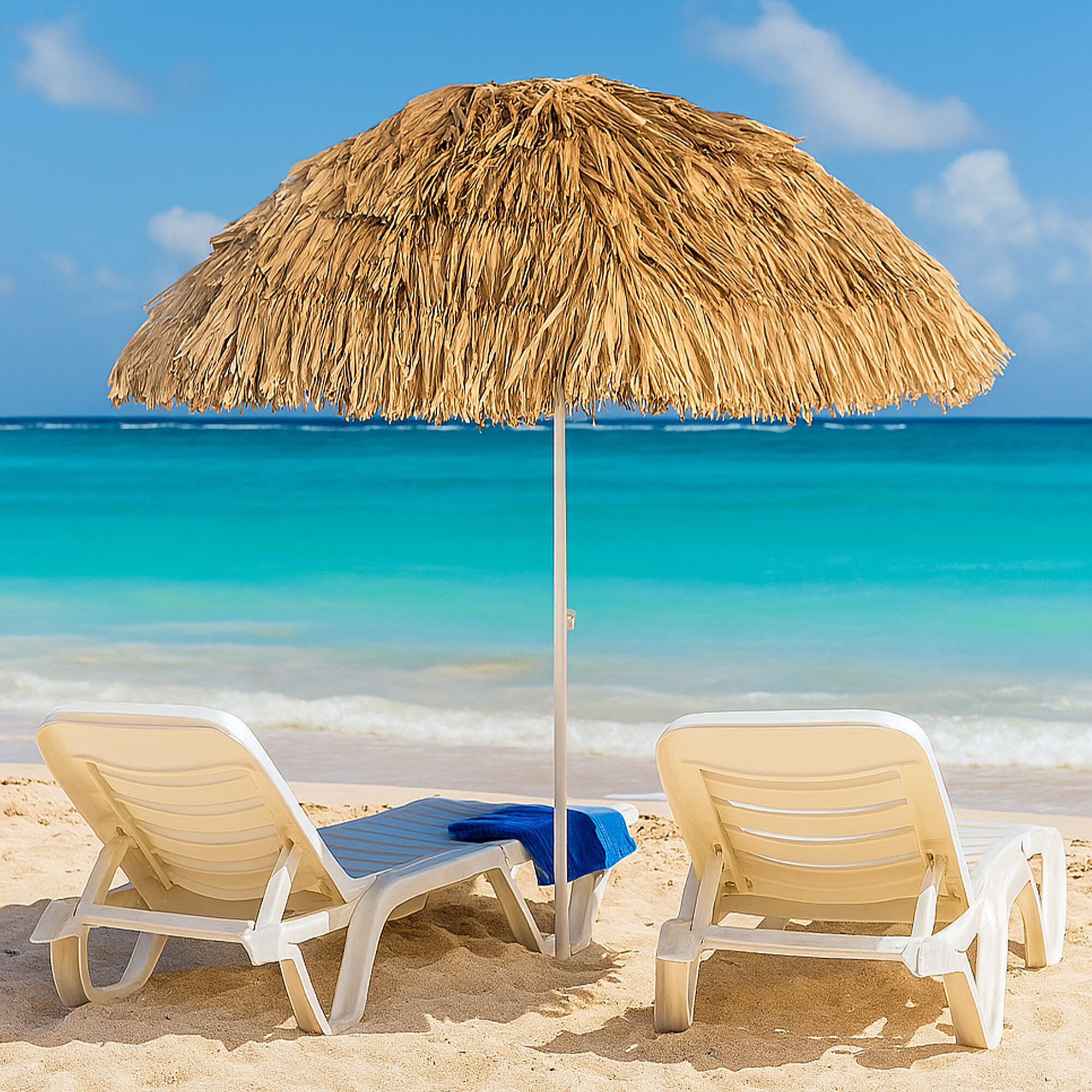 Besorgen Sie sich einen Strandsonnenschirm und bringen Sie ein wenig hawaiianische Atmosphäre in Ihren Garten.