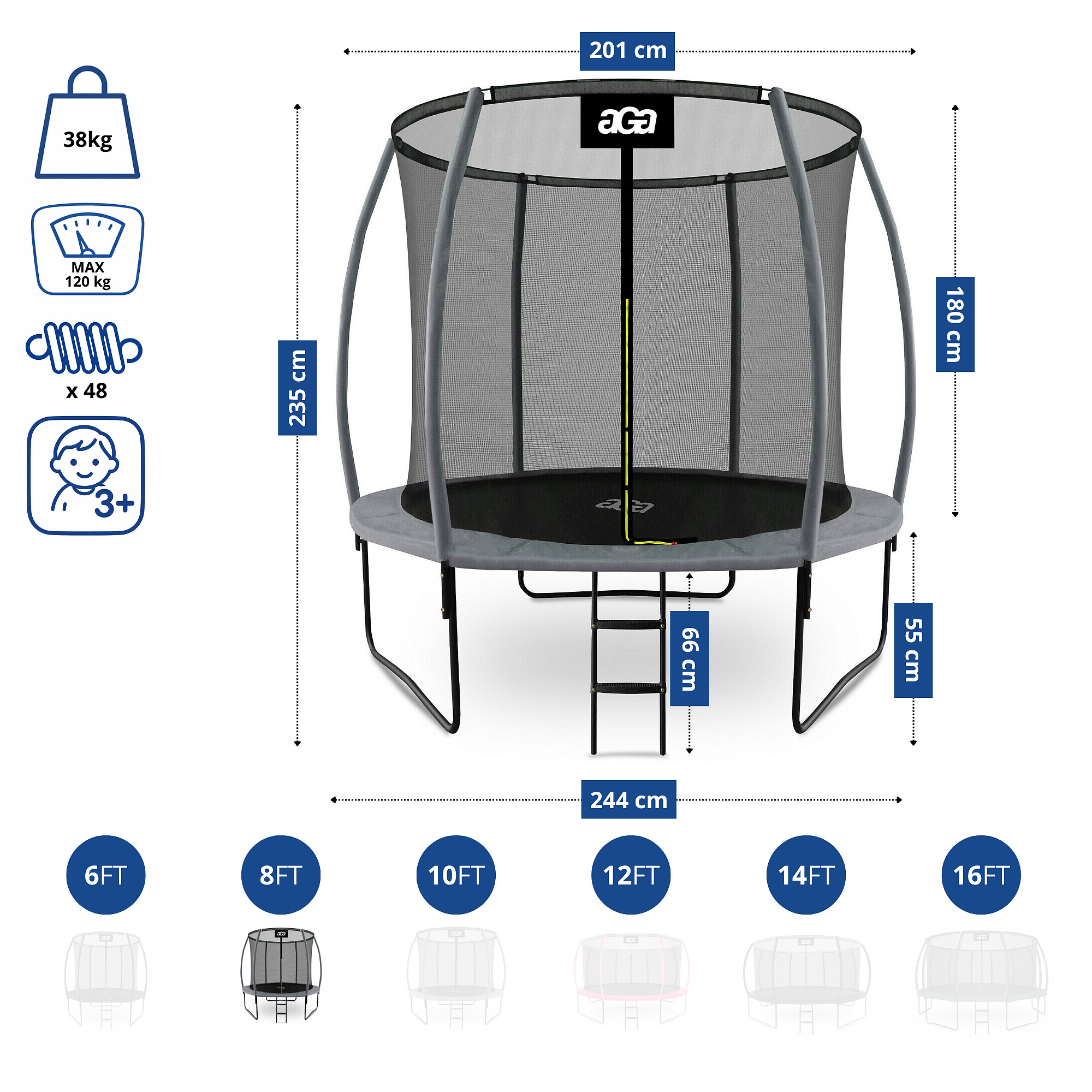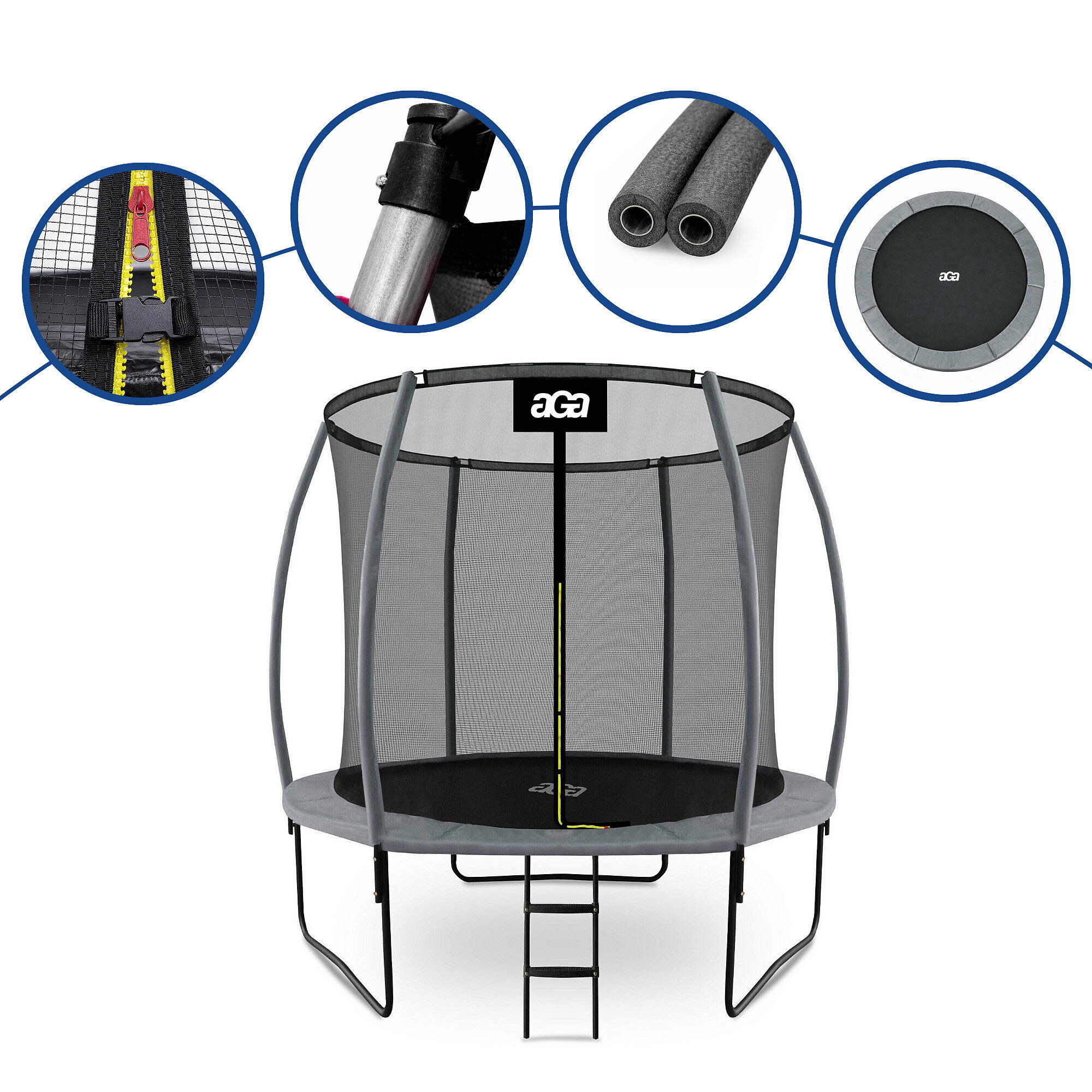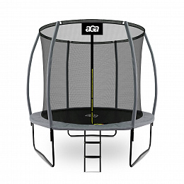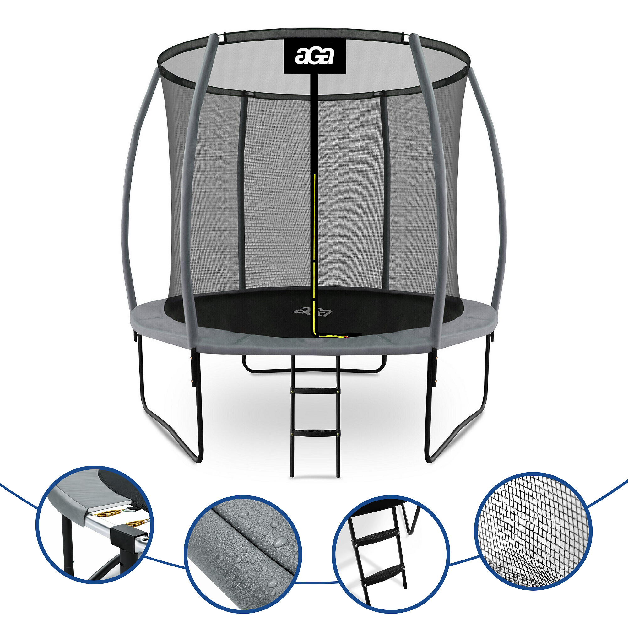 Aga SPORT EXCLUSIVE Trampolin, 244 cm 8 ft Grau, Kindertrampolin, Gartentrampolin mit Sicherheitsnetz + Sicherheitsnetz + Leiter