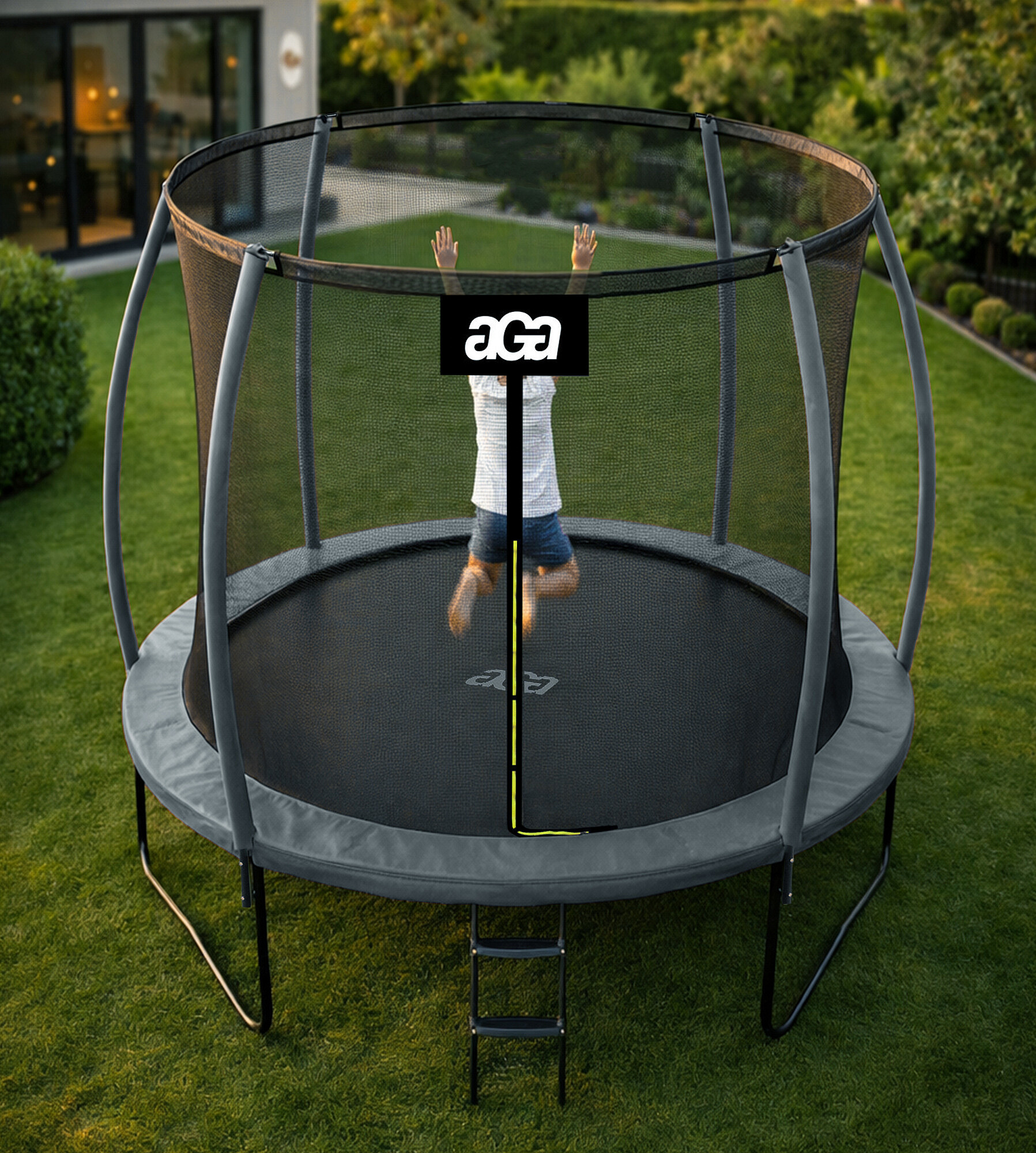 Das Trampolin Aga mit internem Sicherheitsnetz wurde speziell für den sicheren Spaß von Kindern und Erwachsenen entworfen und hergestellt.
