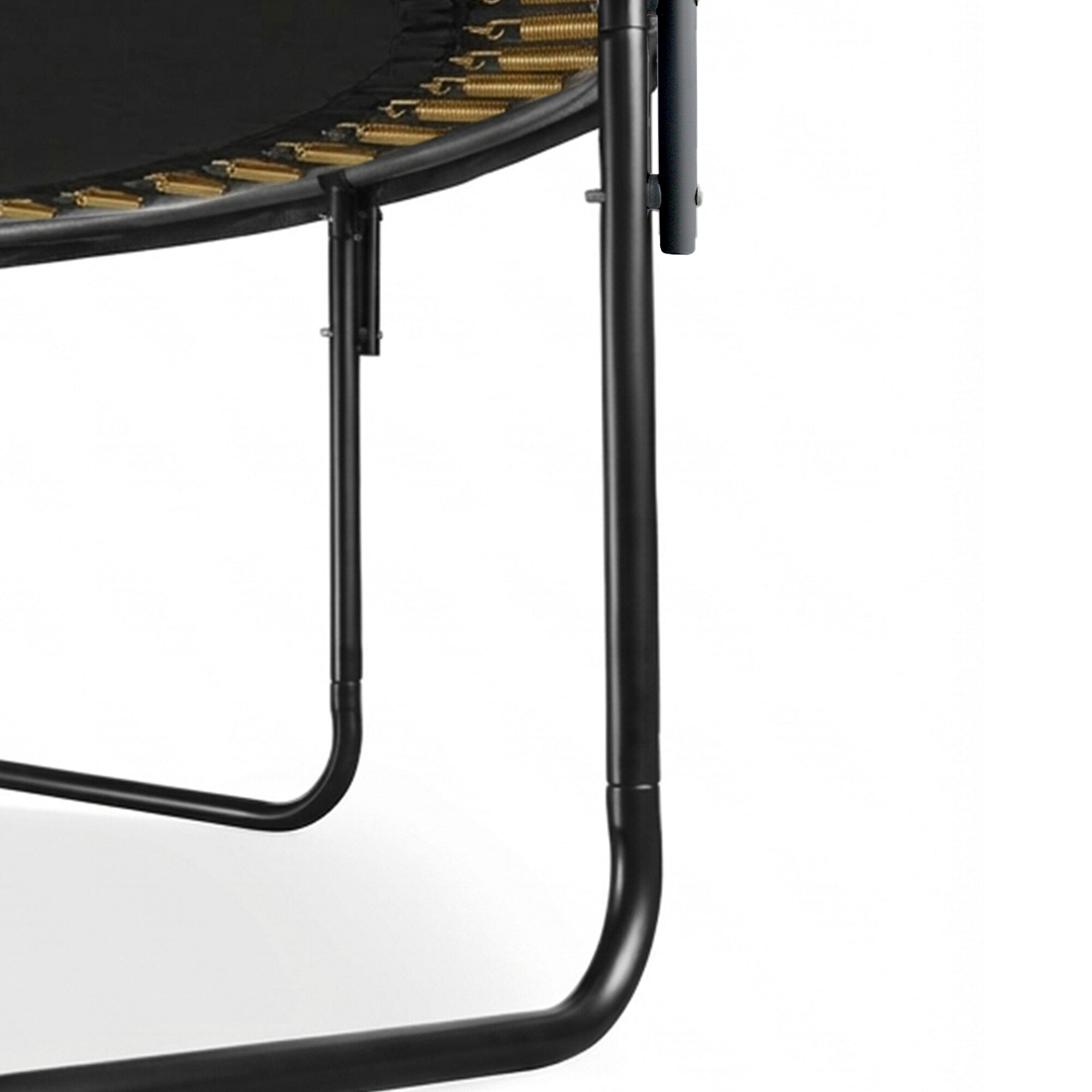 Die runde Hi-Ten verstärkte Konstruktion des Trampolins ist aus hochwertigem galvanisiertem Stahl mit hervorragender Korrosionsbeständigkeit gefertigt, die U-Füße sind mit einer Pulverbeschichtung versehen.