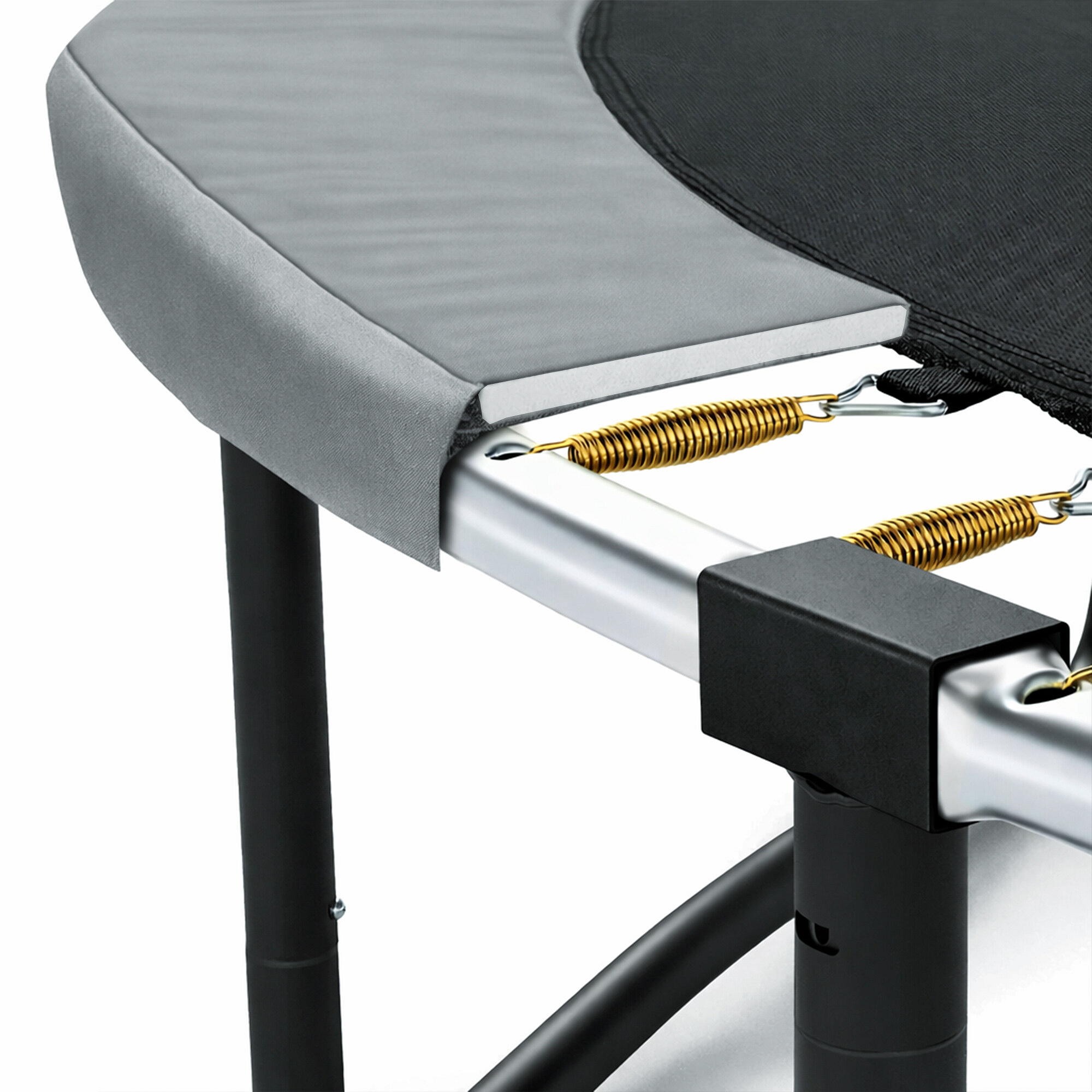 Es funktioniert gleichzeitig als Sicherheitselement, das die Federn über den gesamten Umfang des Trampolins abdeckt.