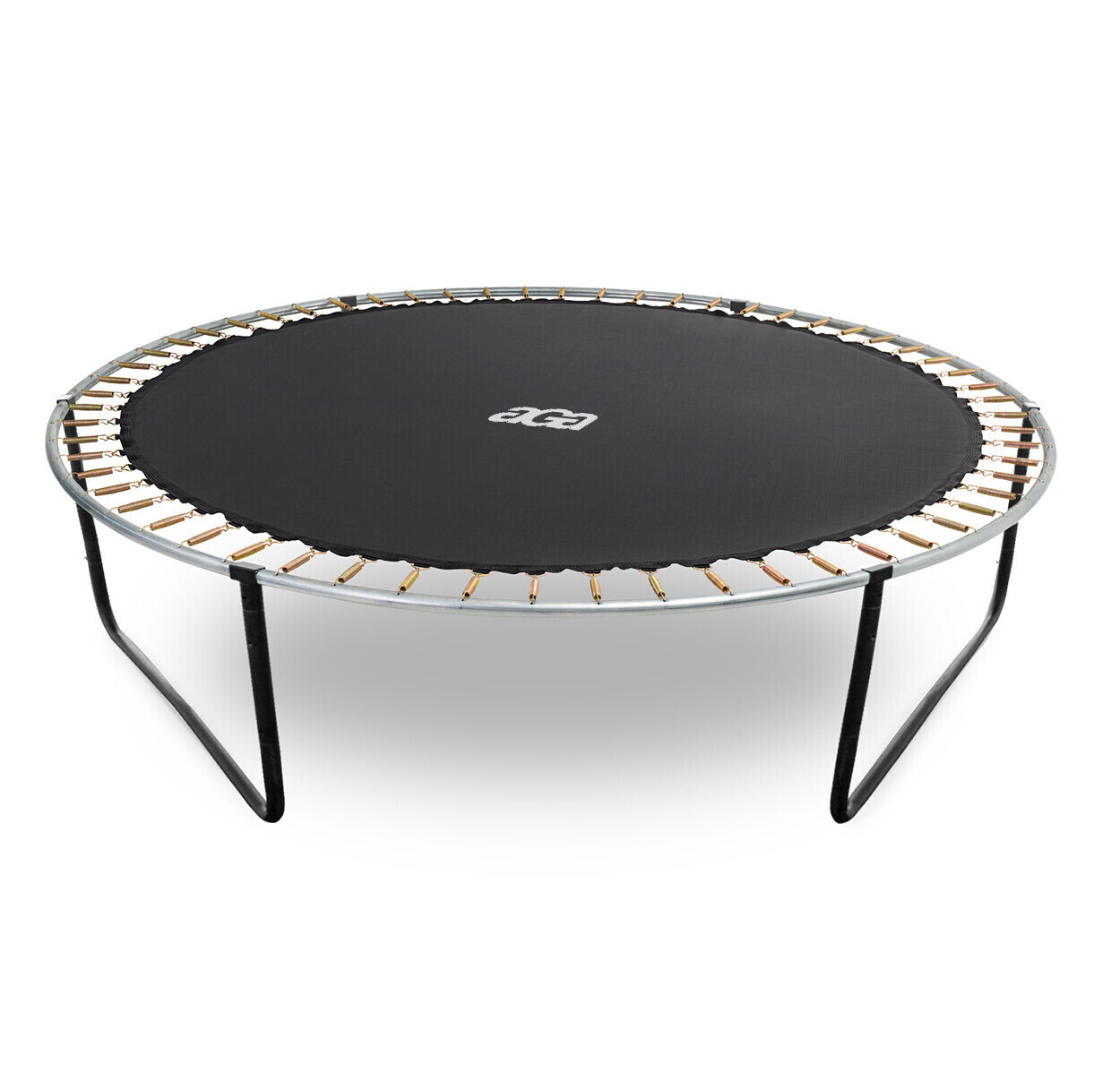Die runde Hi-Ten-verstärkte Konstruktion des Trampolins ist aus hochwertigem, galvanisiertem Stahl mit hervorragender Korrosionsbeständigkeit gefertigt. Die U-förmigen Beine haben eine Pulverbeschichtung.