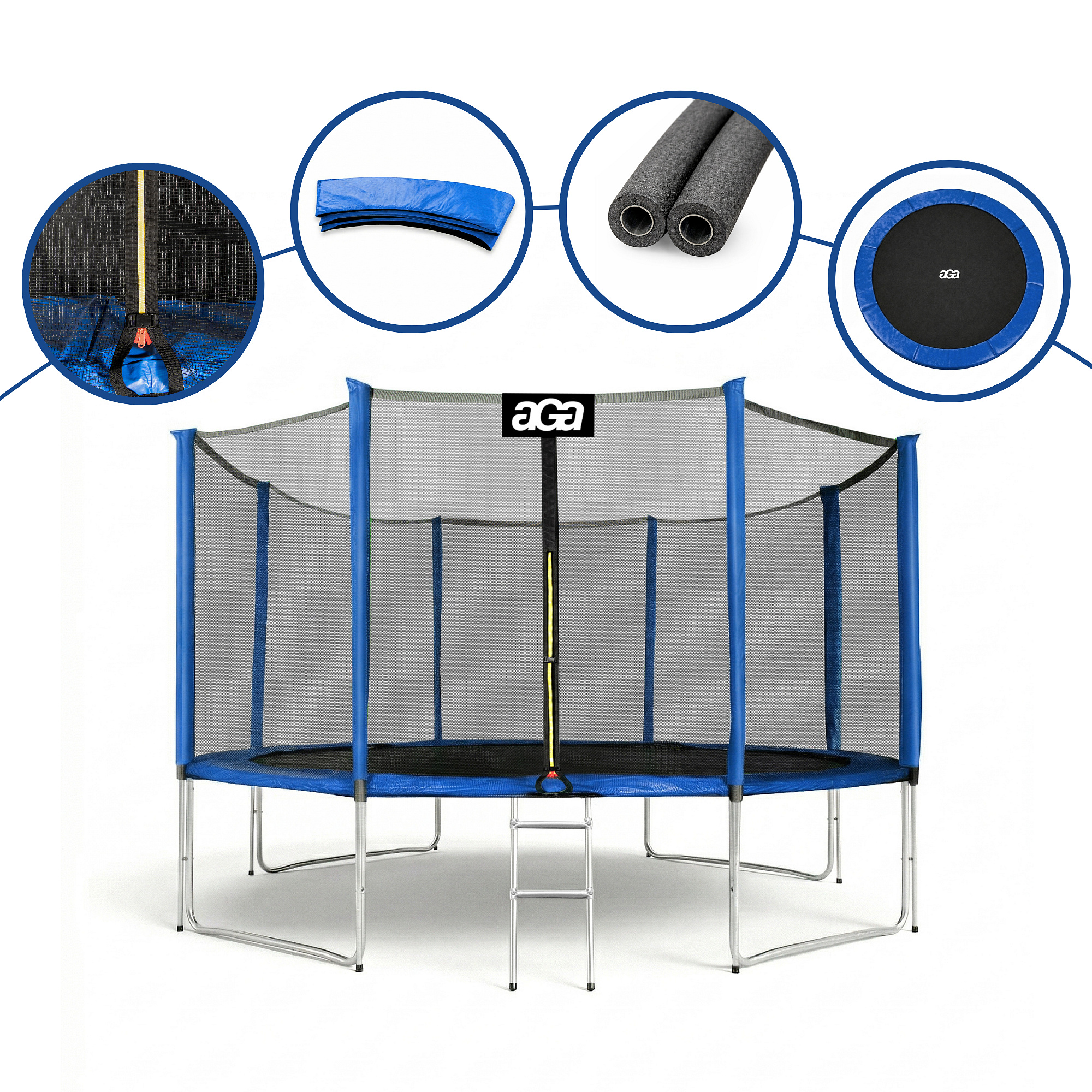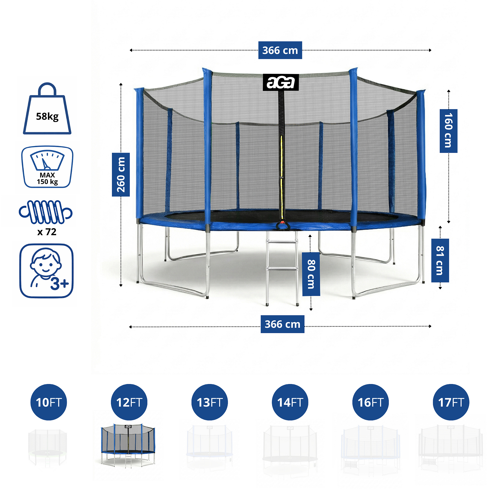 Aga SPORT PRO Trampolin 366 cm 12 ft Blau,Kindertrampolin,Gartentrampolin mit Sicherheitsnetz + Schutznetz + Leiter
