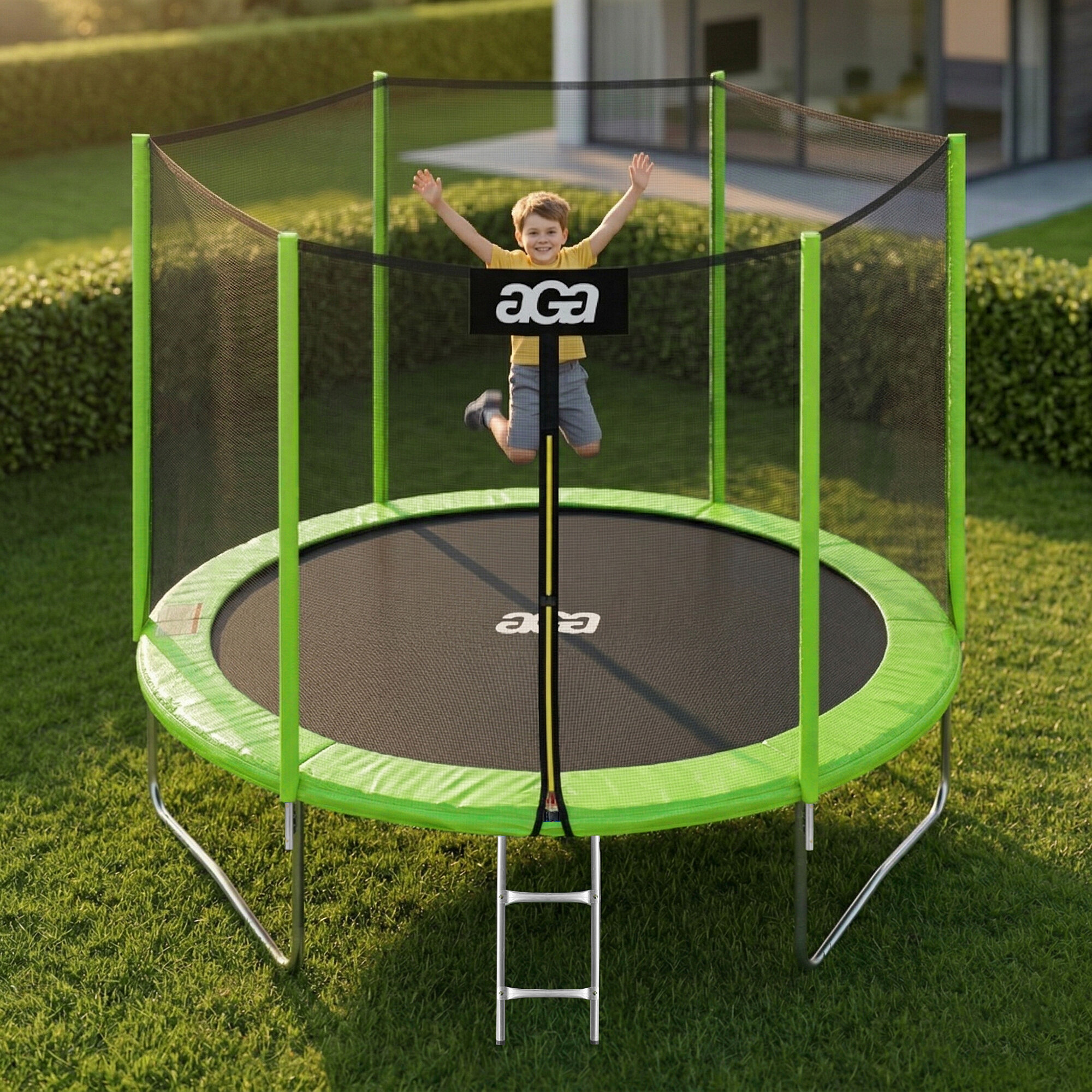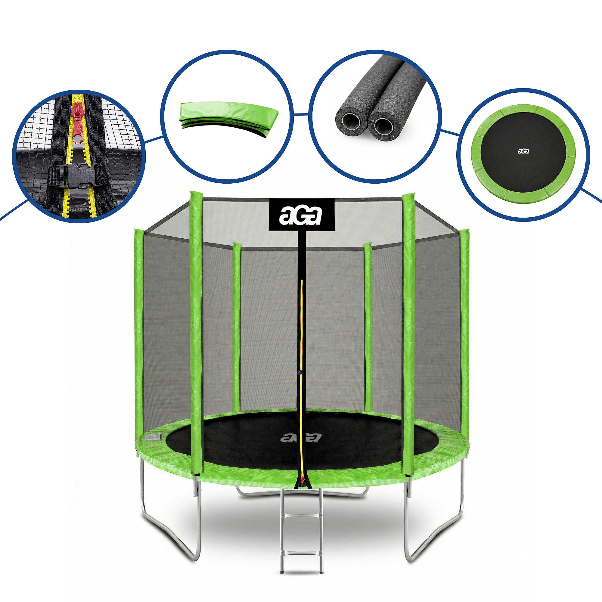 Aga SPORT TOP Trampolin, 244 cm 8 ft Hellgrün, Kindertrampolin, Gartentrampolin mit Sicherheitsnetz + Sicherheitsnetz + Leiter