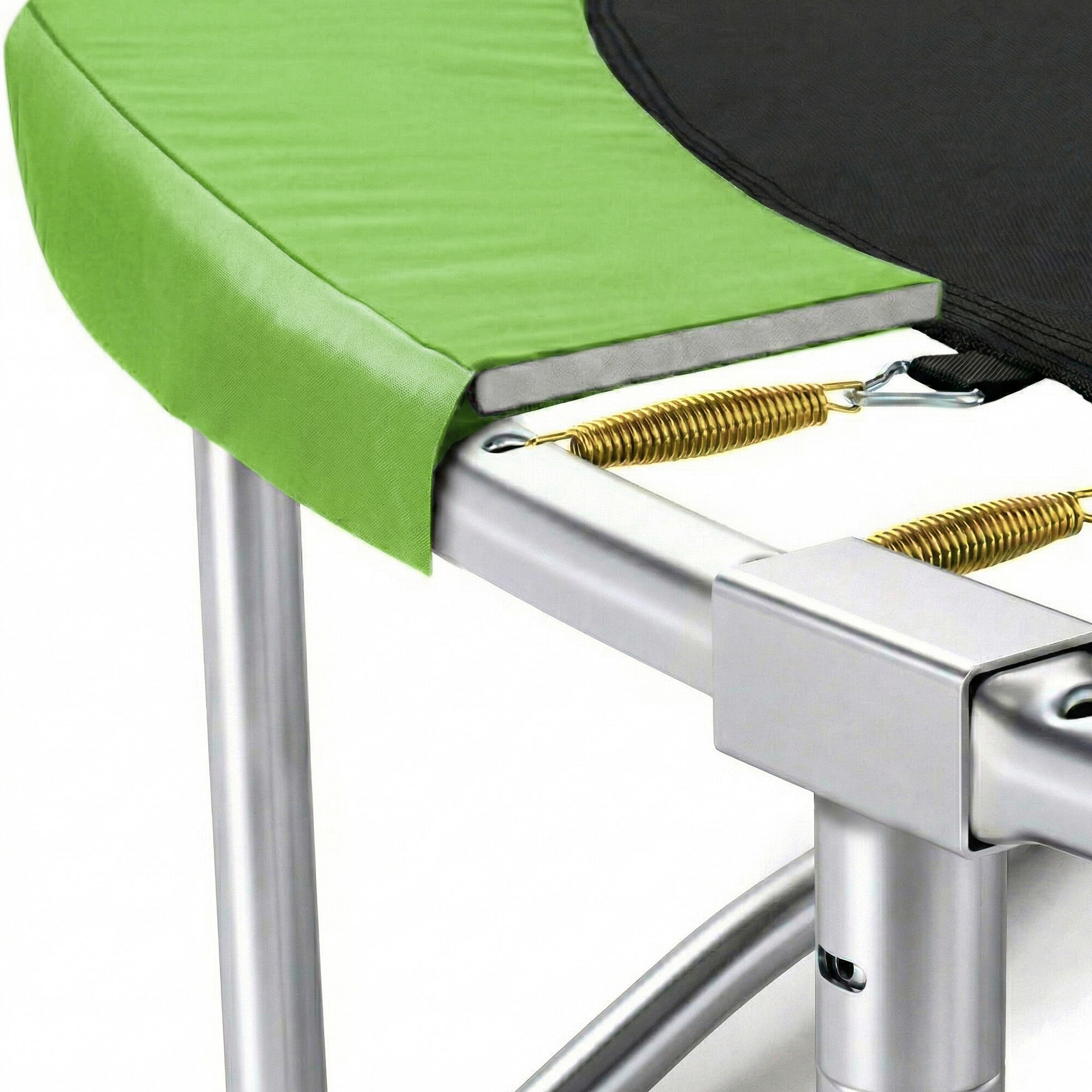 Die maximale Sicherheit des Trampolins wird durch einen gepolsterten Randabdeckung (Federabdeckung) gewährleistet, der aus PVC hergestellt ist und die Federn rund um das Trampolin abdeckt.