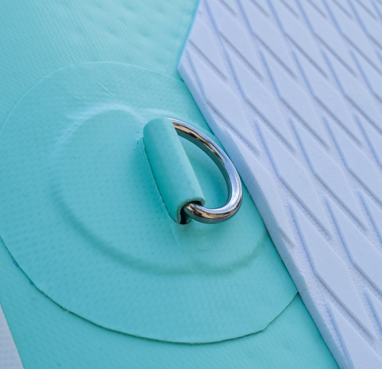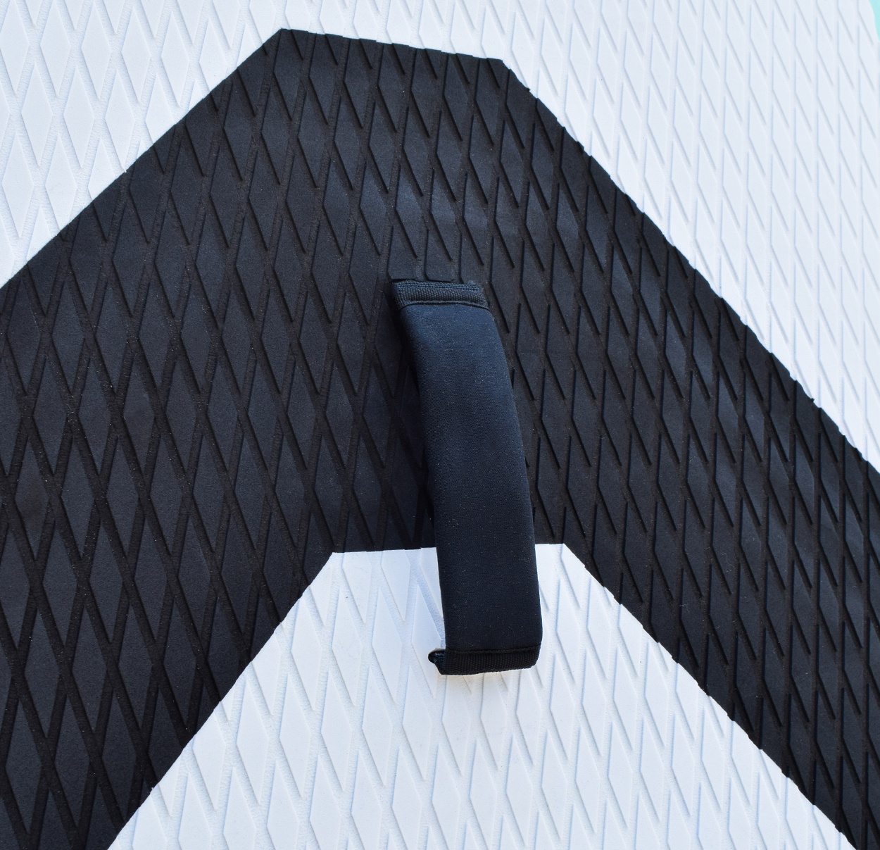 Das Brett ist am Bug und am Heck mit D-Ring-Griffen zum Befestigen der Sicherheitsleine ausgestattet.