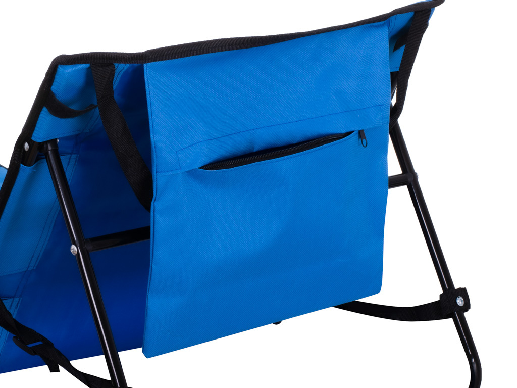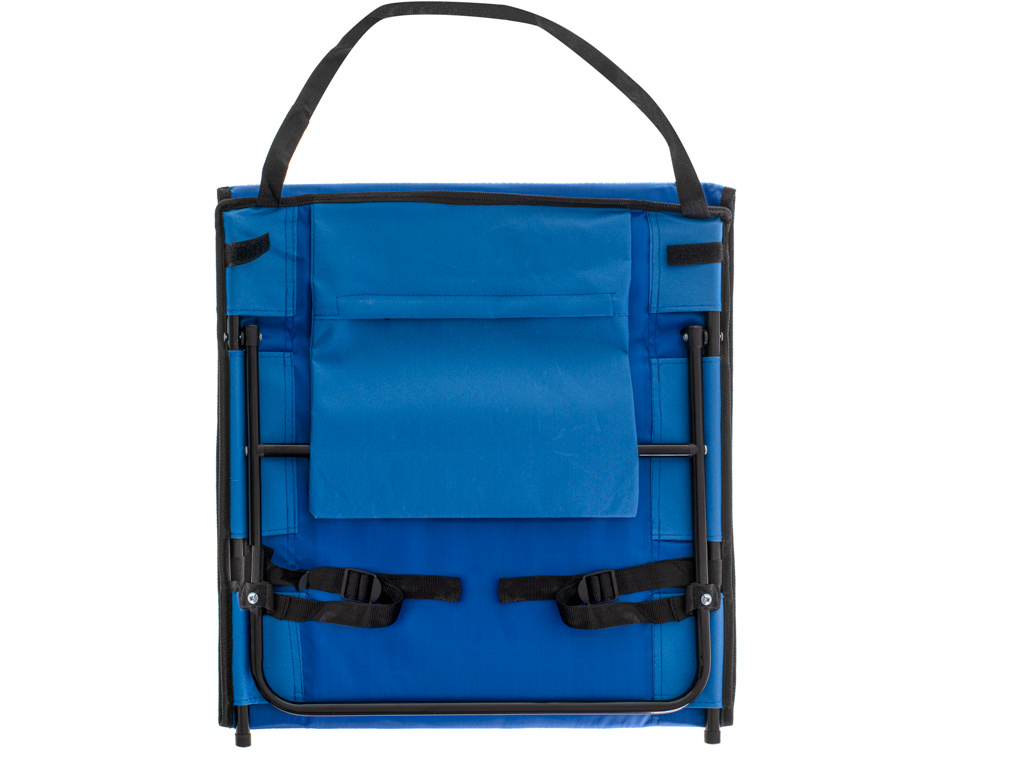 Er ist leicht und nimmt zusammengeklappt nur wenig Platz ein. Er hat einen praktischen Griff zum einfachen Tragen. Außerdem ist er mit einer praktischen Tasche ausgestattet, die an der Rückenlehne befestigt ist und in der Sie Ihr Telefon, Ihre Schlüssel oder andere kleine Gegenstände verstauen können.