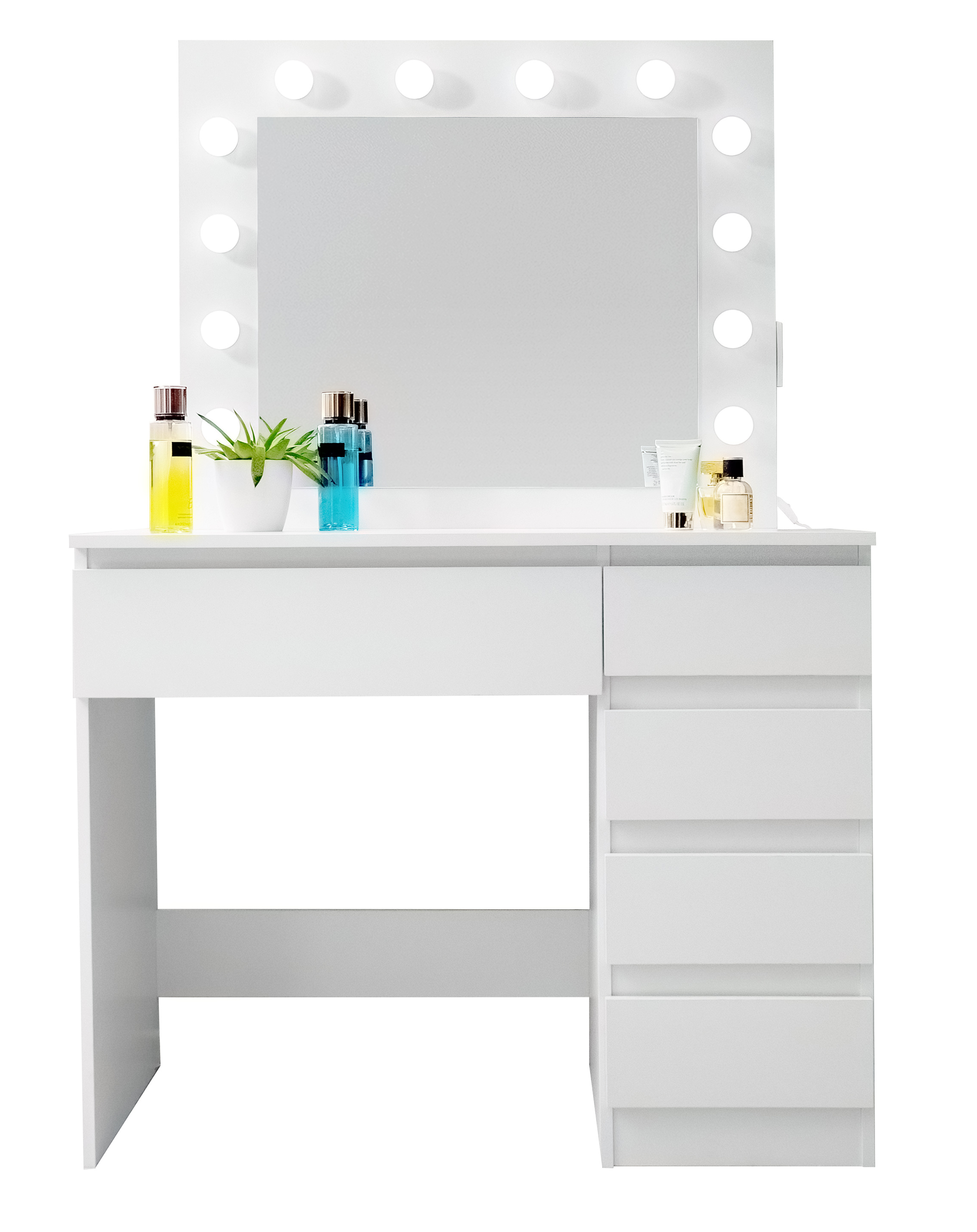 Sie werden sicherlich auch die 5 geräumigen Schubladen zu schätzen wissen, in denen Sie bequem all Ihre Kosmetikartikel, Schmuckstücke und andere Accessoires verstauen können.