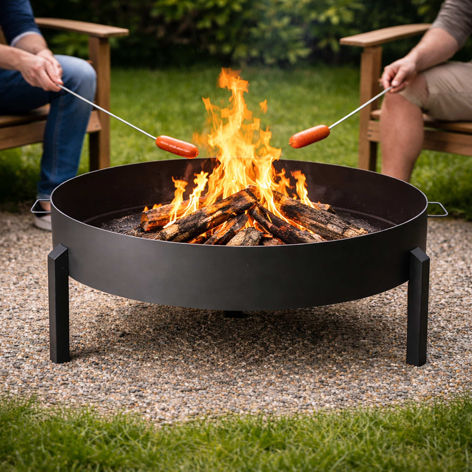 Diese große Gartenfeuerstelle kann nicht nur als Wärme- und Lichtquelle genutzt werden, sondern auch zum Rösten von Würstchen, Grillen oder in Kombination mit einem Dreibein zum Kochen im Kessel. Perfekte Lösung für das Kochen im Freien am Feuer und Entspannung unter freiem Himmel.