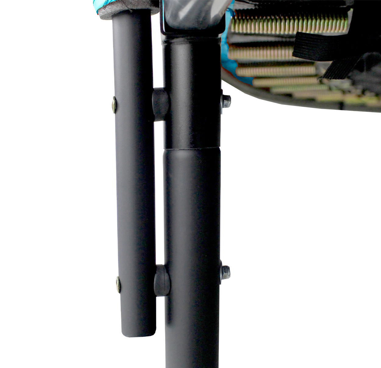 Die kreisförmige Hi-Ten verstärkte Trampolinstruktur ist aus hochwertigem verzinktem Stahl mit ausgezeichneter Korrosionsbeständigkeit hergestellt, die Beine sind pulverbeschichtet.