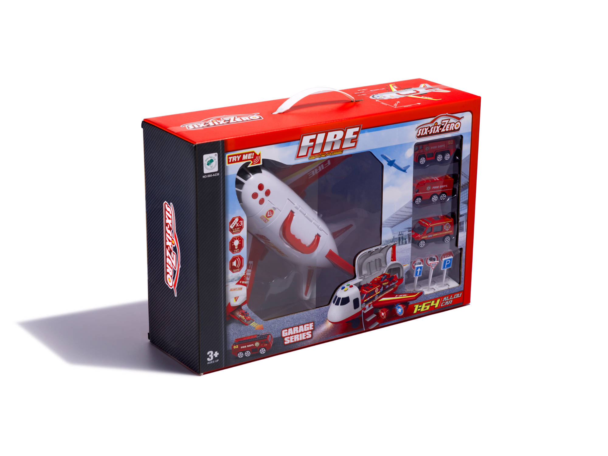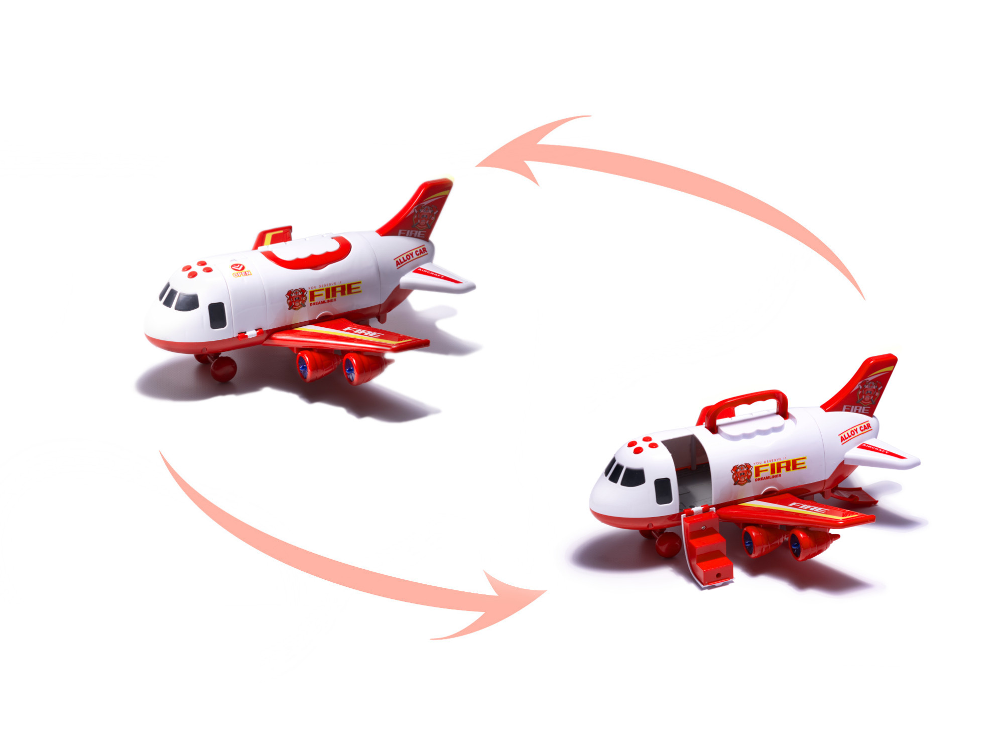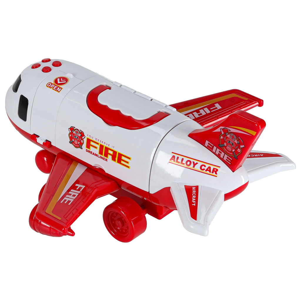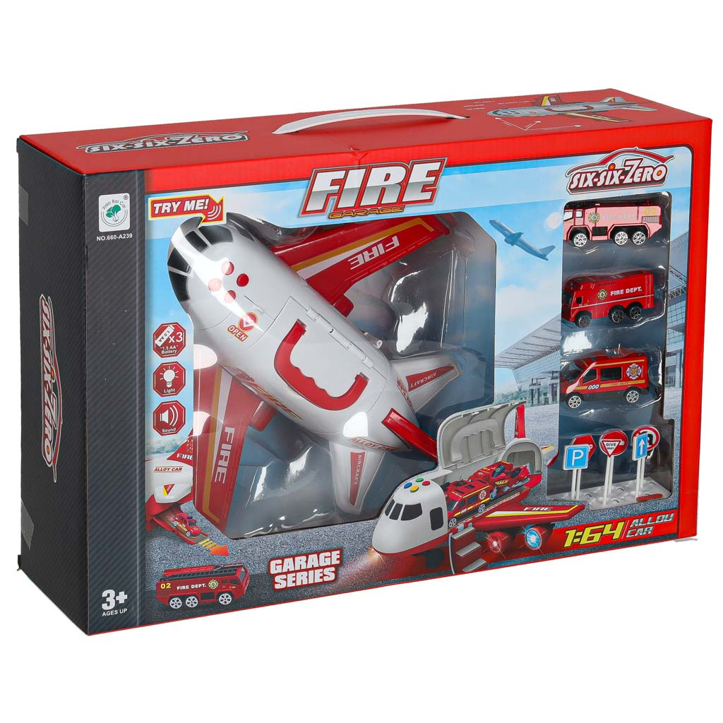 Diese Aufgaben können von mutigen, mit schwerem Gerät ausgestatteten Feuerwehrleuten bewältigt werden. Sie werden am Tatort eintreffen... auf dem Luftweg!Große Motorflugzeuge , die die angeschlossenen Autos und Figuren an Bord nehmen können.Als echter Schwerlasttransporter verfügt das Flugzeug über eine Absetzrampe am Heck, über die Fahrzeuge einsteigen können. Es kann auch zum Besprühen der Brandstelle mit Wasser verwendet werden! Wie es sich für ein echtes Löschflugzeug gehört, spritzt Wasser aus ihm heraus.Das Flugzeug kann auch von der Seite geöffnet werden, um die Handhabung des Spielzeugs im Inneren zu erleichtern.Aber vergessen wir nicht die tapferen Feuerwehrleute! Für sie gibt es traditionelles Treppensteigen.