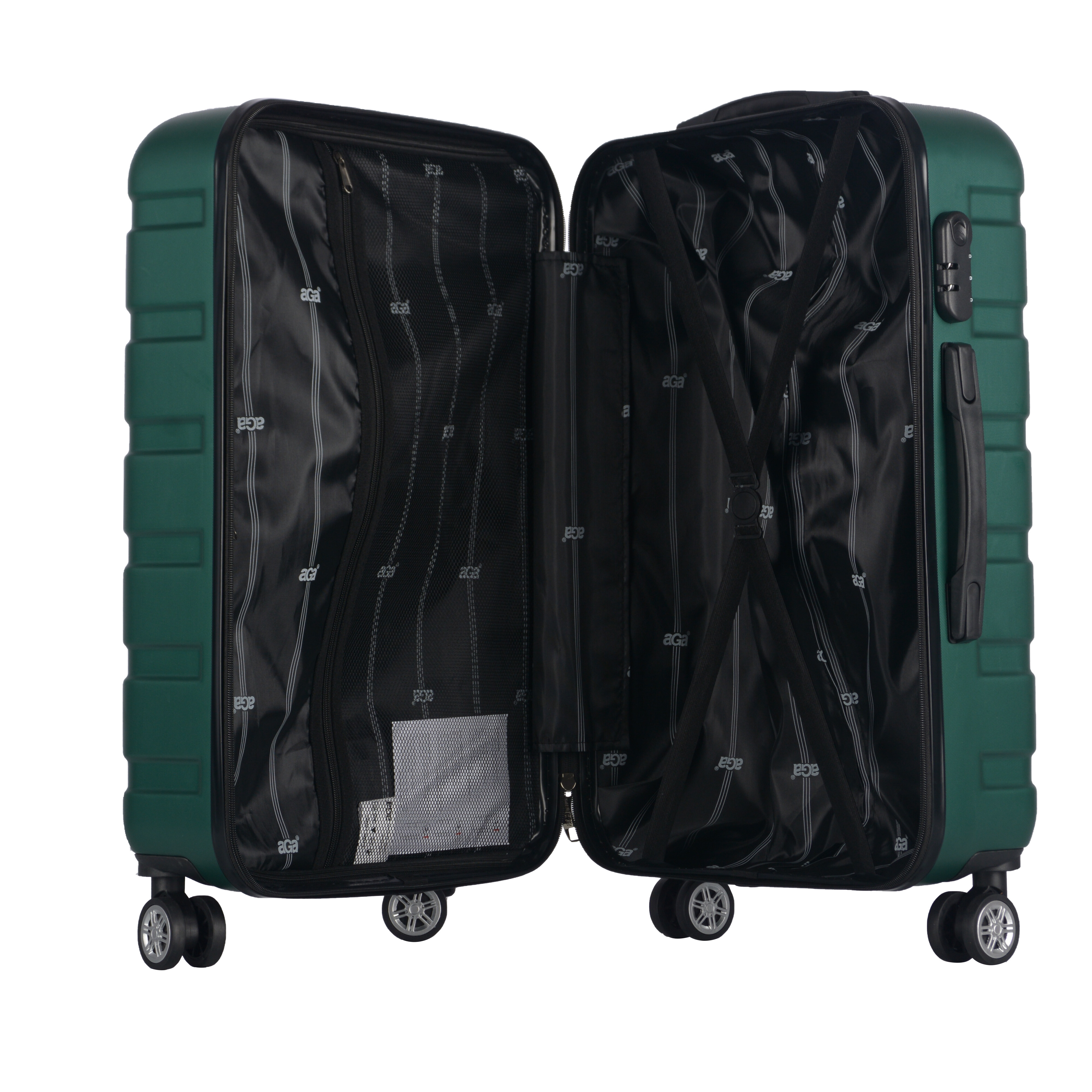 Der Koffer ist mit einem Reißverschluss verschließbar. Beide Reißverschluss-Schieber können in das versenkte Zahlenschloss eingesteckt werden.Der Reisekoffer ist mit vier drehbaren (um 360 °) Doppelrollen ausgestattet, die es Ihnen ermöglichen, den Koffer zu ziehen, was die Handhabung erheblich erleichtert.
