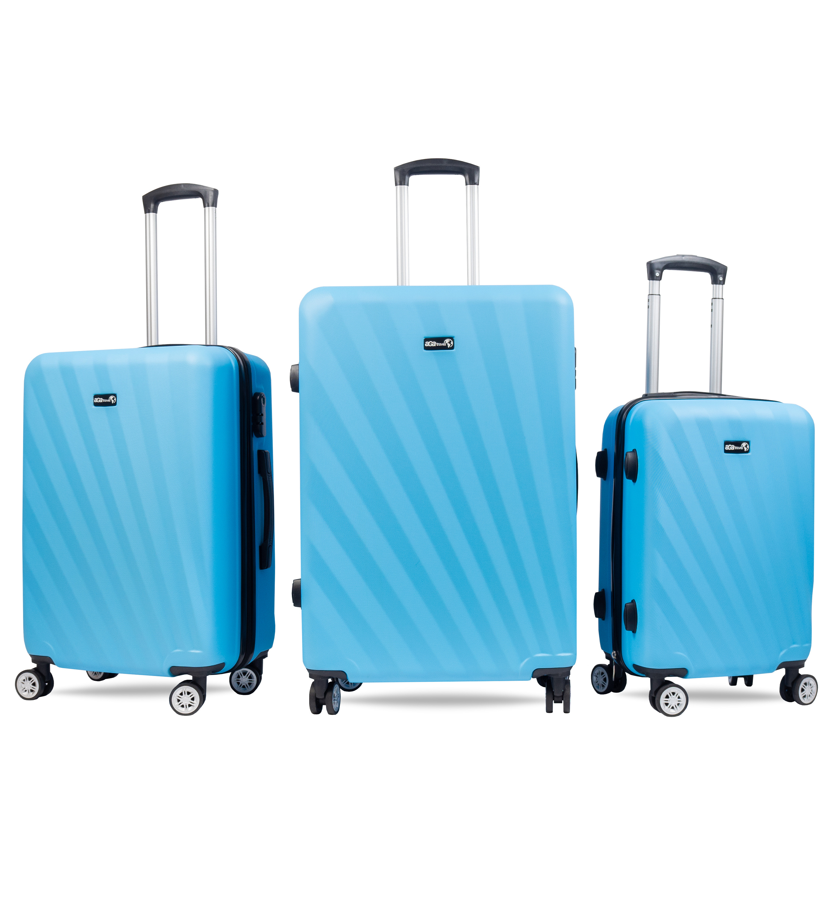 Aga Travel Reisekofferset Hartschalenkoffer, Doppeltragegriff mit Zahlenschloss, Trolley Reisekoffer 3tgl 4 Rollen Reisekoffer MR4653 Blau