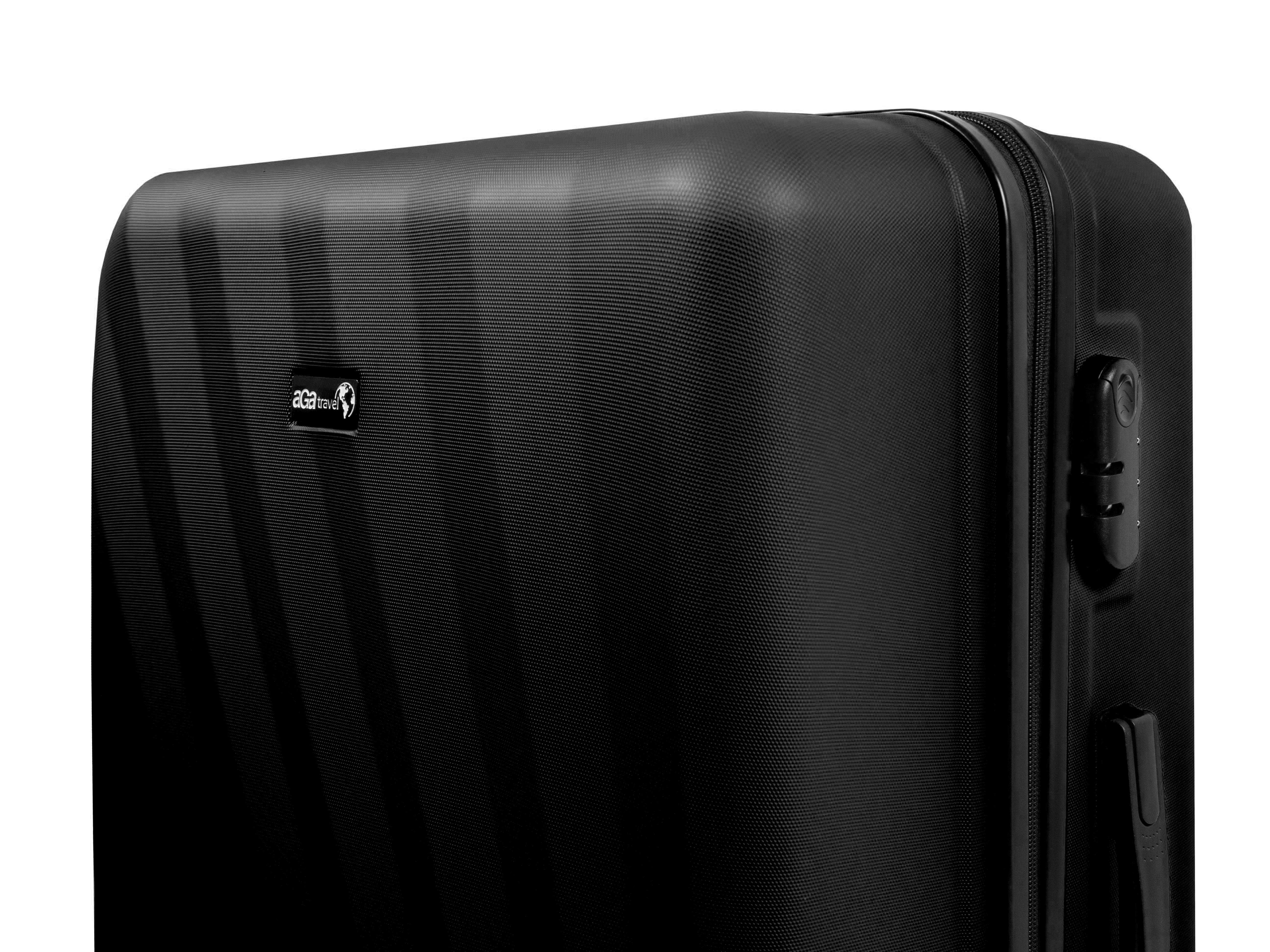 Aga Travel Kofferset, Reisekofferset MR4653 Schwarz, Hartschalenkoffer, Doppeltragegriff mit Zahlenschloss, Trolley Reisekoffer 3tgl 4 Rollen Reisekoffer