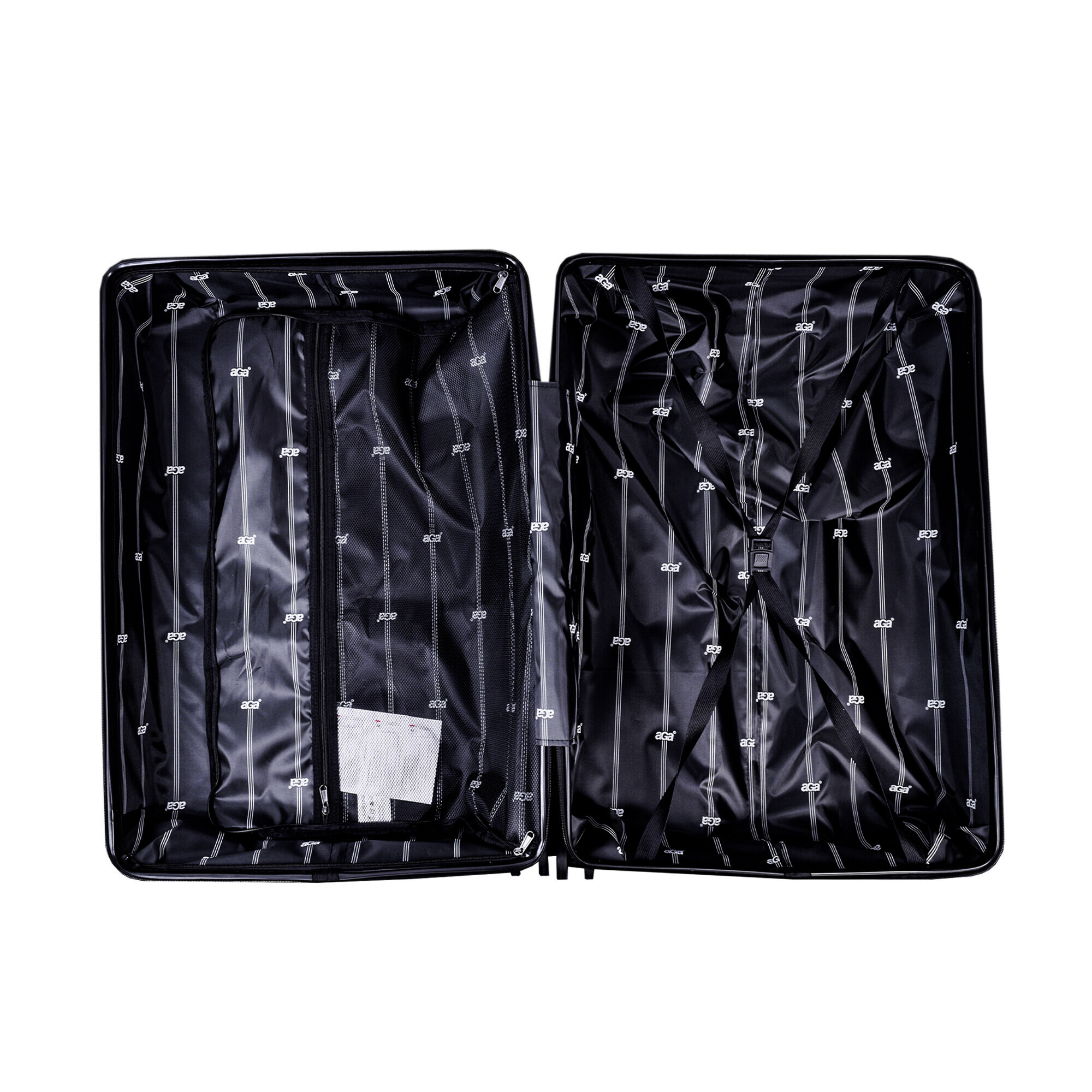 Der Koffer verfügt auch über eine Trennwand mit einer Tasche. Die Tasche dient zur Aufbewahrung Ihrer Wertsachen oder Dokumente.Die sichere Aufbewahrung Ihrer Sachen wird durch ein dreistelliges Zahlenschloss gewährleistet, mit dem das Kofferset ausgestattet ist. Die Koffer sind mit einem Reißverschluss verschließbar. Beide Reißverschluss-Schieber können in das versenkte Zahlenschloss eingesteckt werden.