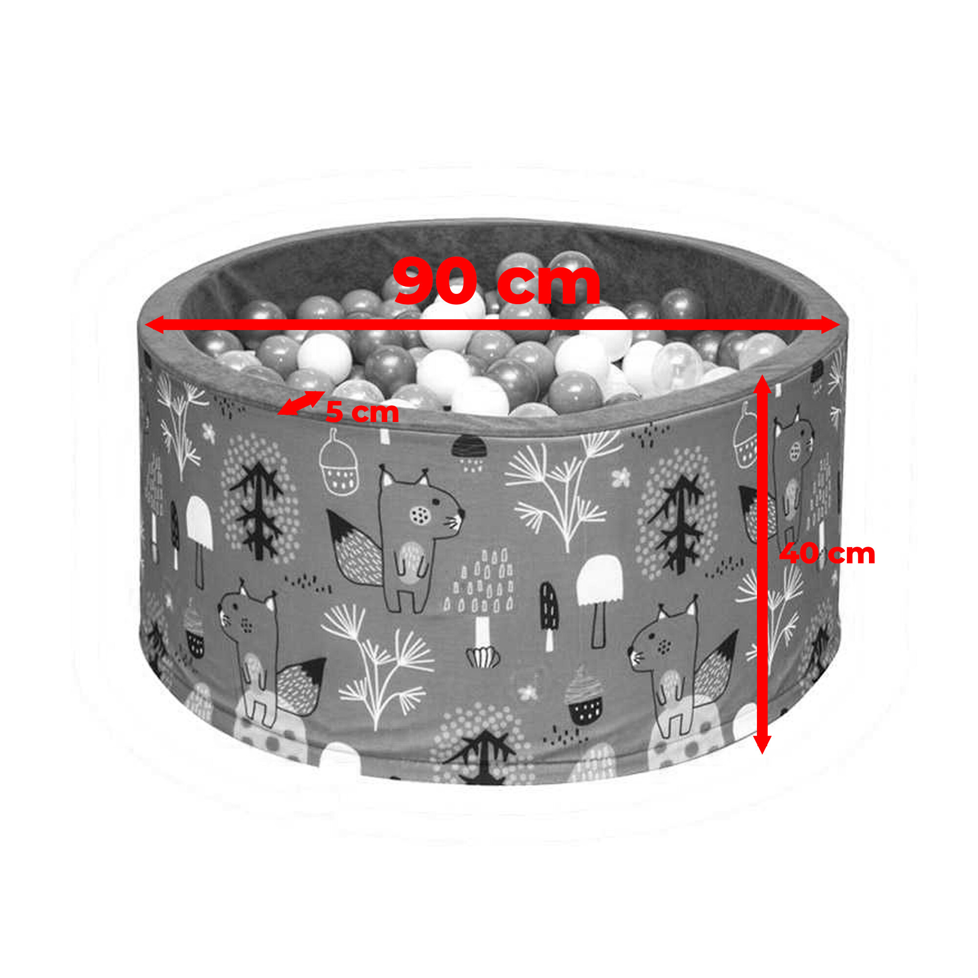 Spezifikationen des trockenen Pools 90x40 mit Bällen.