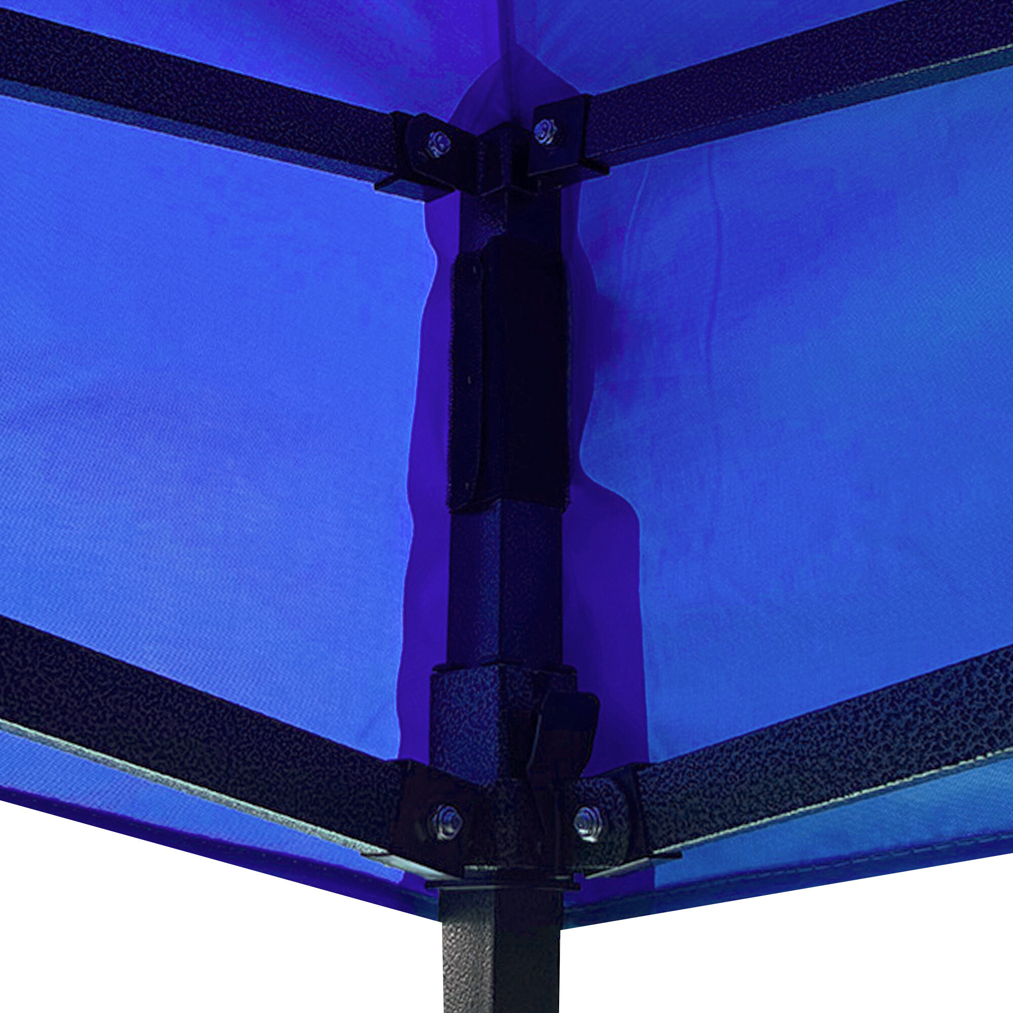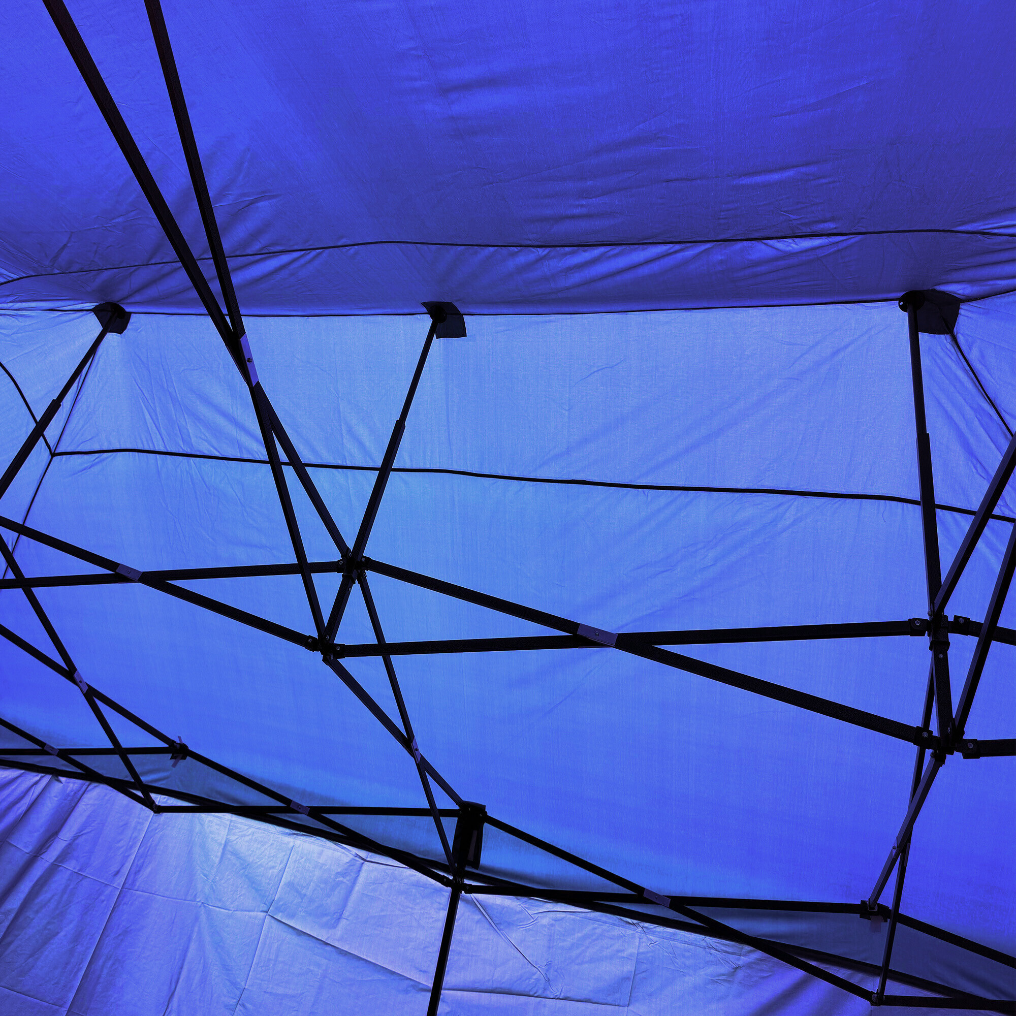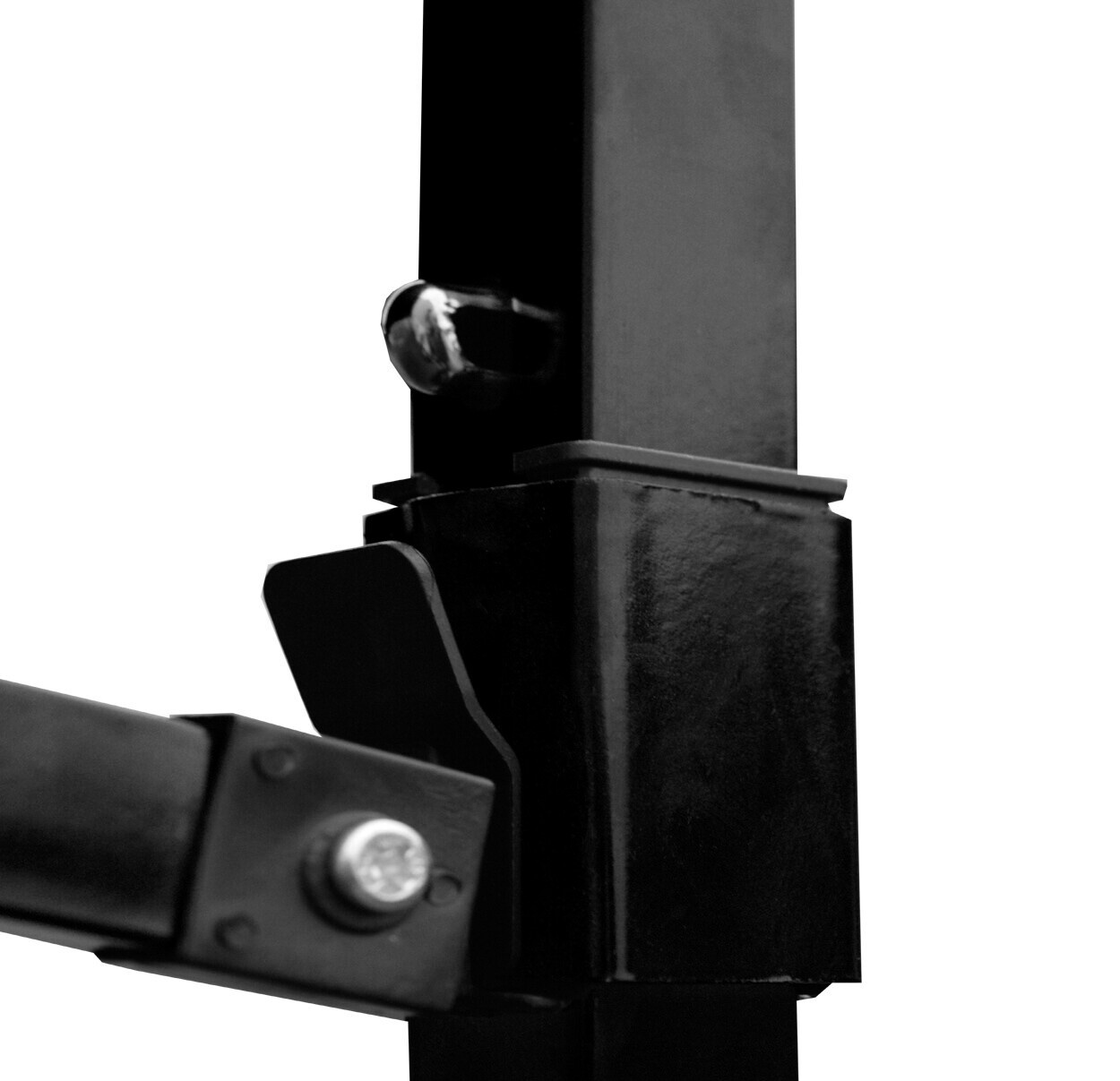 Das Dach des Standes besteht aus strapazierfähigem 420D PU Oxford-Gewebe, das sowohl vor Sonneneinstrahlung als auch vor Regen schützt und leicht von Hand gewaschen werden kann. Die robuste Stahlkonstruktion mit Scherenmechanismus ist pulverbeschichtet, wodurch sie vor Korrosion und langfristigem Verschleiß geschützt ist. Verschraubte Verbindungen gewährleisten maximale Festigkeit und bei Bedarf auch einfache Wartung. Die Höhe der Konstruktion kann in drei Stufen eingestellt werden (213–290 cm).