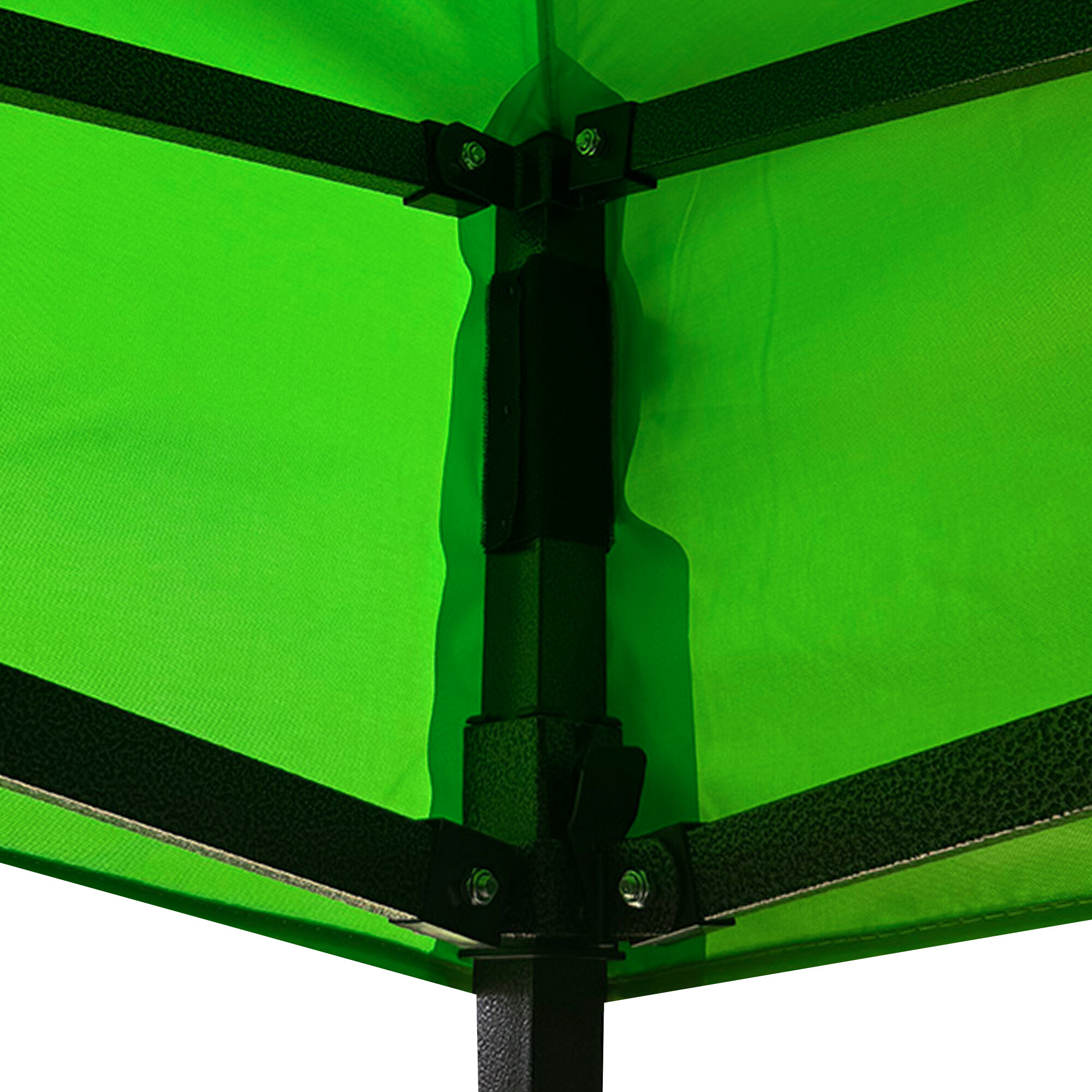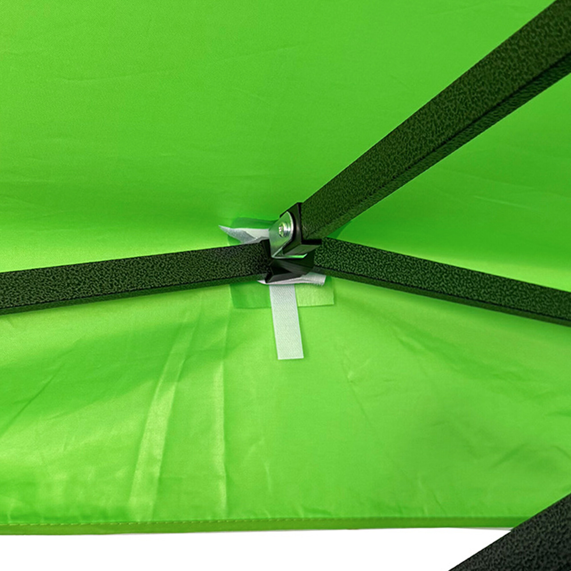 Das Dach des Standes besteht aus strapazierfähigem 420D PU Oxford-Gewebe, das sowohl vor Sonneneinstrahlung als auch vor Regen schützt und leicht von Hand gewaschen werden kann. Die robuste Stahlkonstruktion mit Scherenmechanismus ist pulverbeschichtet, wodurch sie vor Korrosion und langfristigem Verschleiß geschützt ist. Verschraubte Verbindungen gewährleisten maximale Festigkeit und bei Bedarf auch einfache Wartung. Die Höhe der Konstruktion kann in drei Stufen eingestellt werden (213–290 cm).