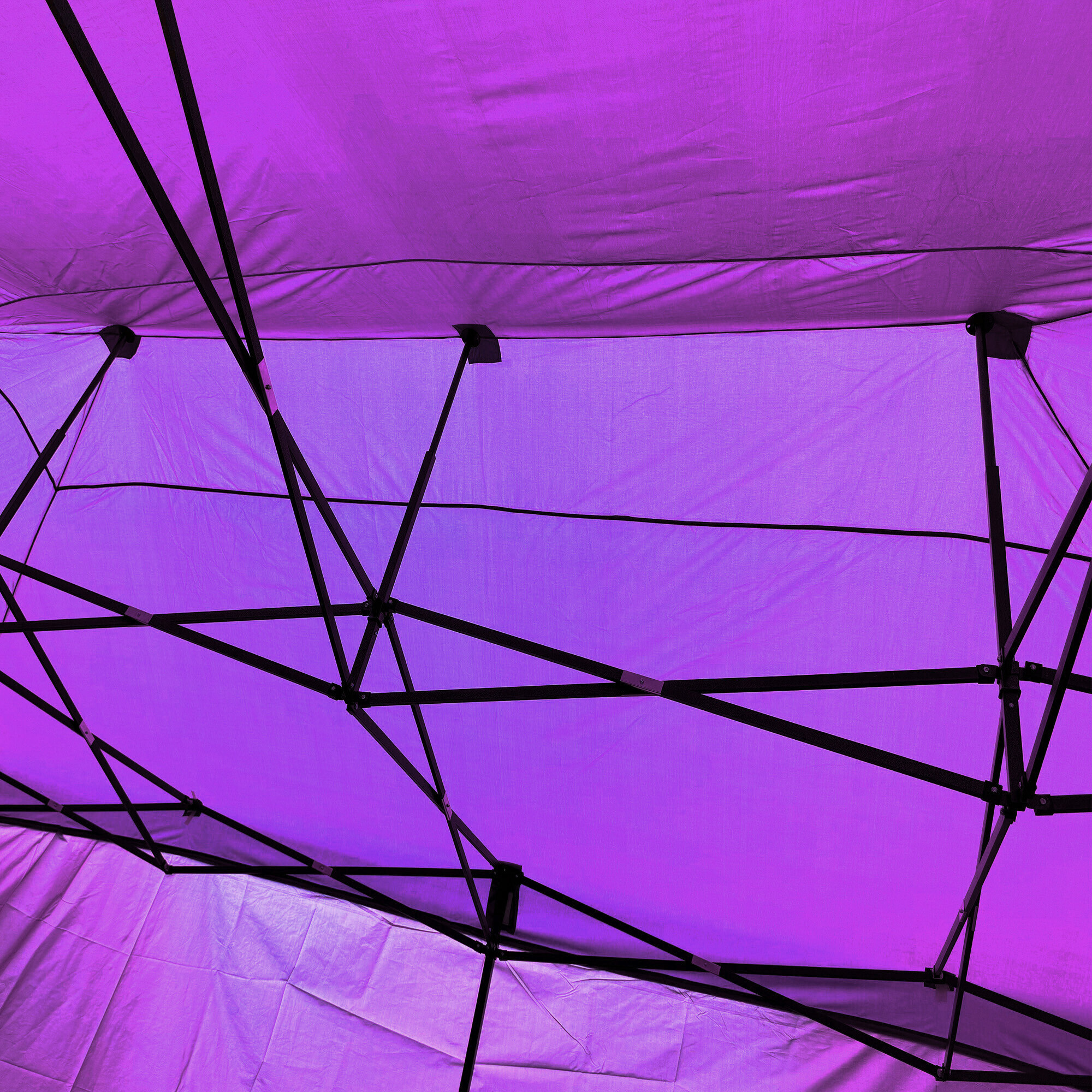 Bei diesem Modell ist zusätzlich in der Mitte der Konstruktion ein zusätzlicher mittlerer Fuß platziert, der der gesamten Fläche zusätzliche Unterstützung bietet. Dank dessen ist der Rahmen auch bei größerer Belastung stabil und gleichzeitig wird ein Durchbiegen des Daches auf einer so großen Fläche verhindert. Jedes Bein endet mit einem Fuß, der die Möglichkeit bietet, im Boden verankert zu werden, was die Gesamtstabilität des Standes auch unter anspruchsvolleren Bedingungen erheblich erhöht.