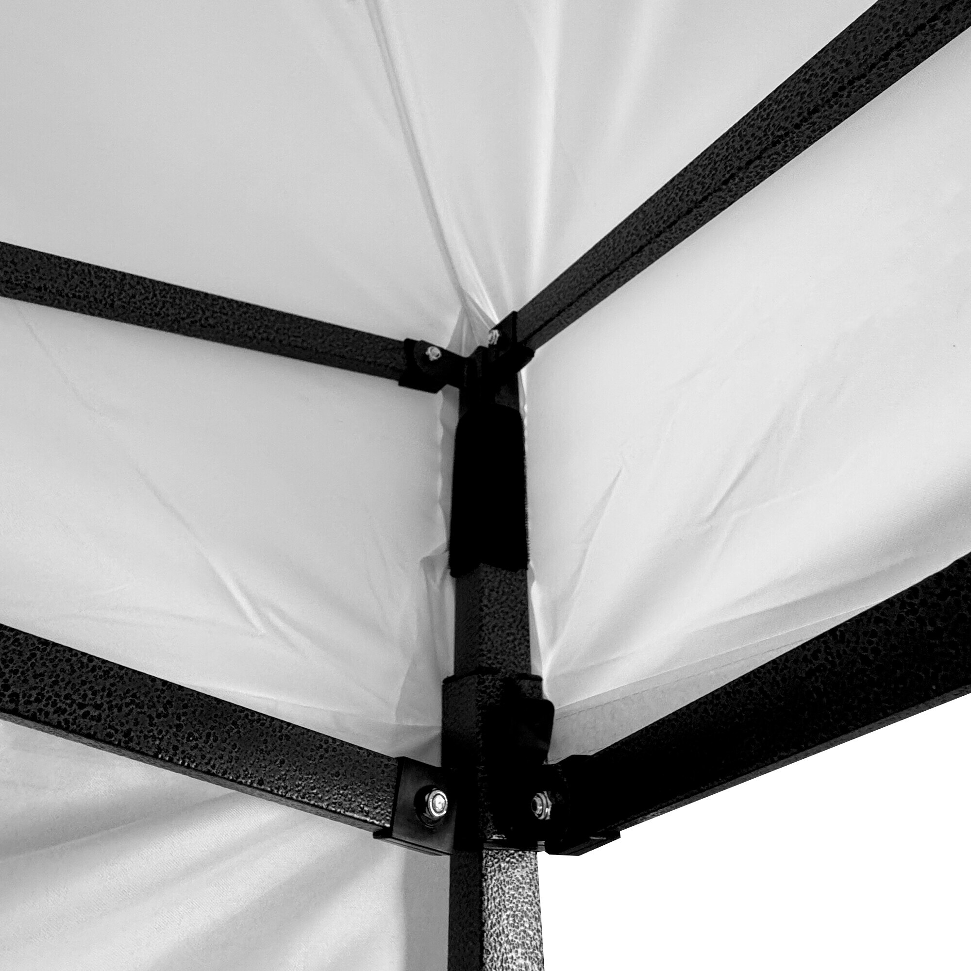 Bei diesem Modell ist zusätzlich in der Mitte der Konstruktion ein zusätzlicher mittlerer Fuß platziert, der der gesamten Fläche zusätzliche Unterstützung bietet. Dank dessen ist der Rahmen auch bei größerer Belastung stabil und gleichzeitig wird ein Durchbiegen des Daches auf einer so großen Fläche verhindert. Jedes Bein endet mit einem Fuß, der die Möglichkeit bietet, im Boden verankert zu werden, was die Gesamtstabilität des Standes auch unter anspruchsvolleren Bedingungen erheblich erhöht.