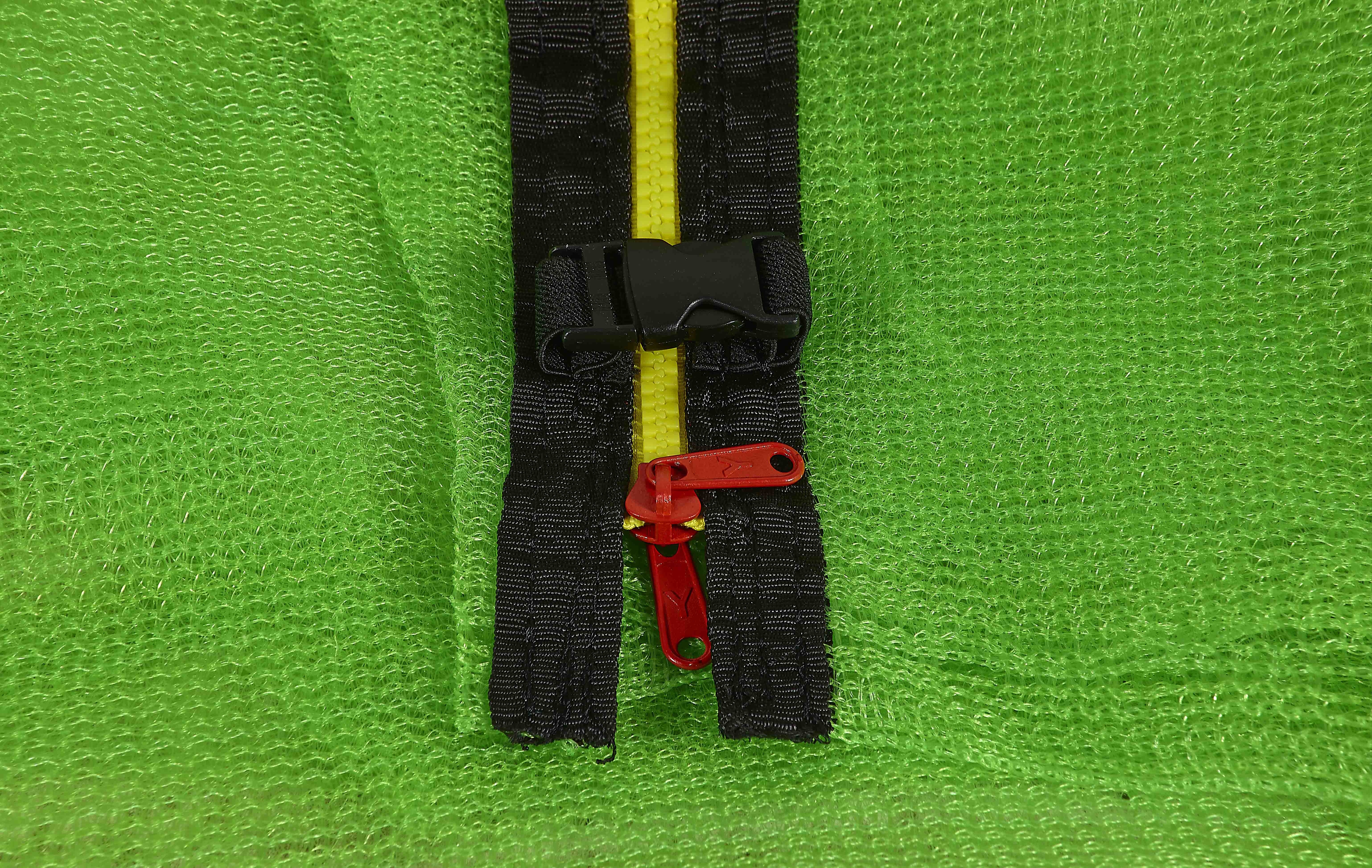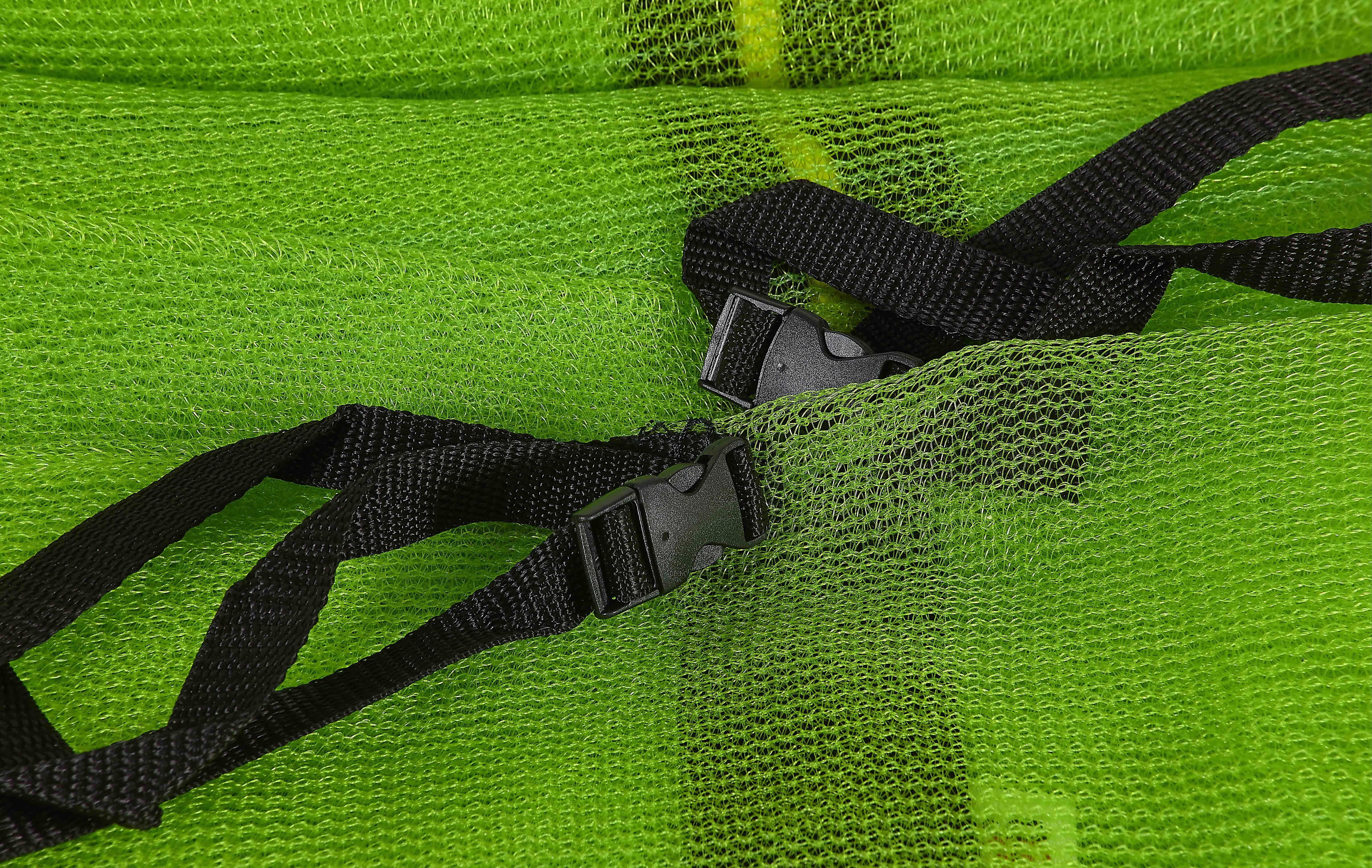 Der Netzeinlass ist mit einem Reißverschluss mit Sicherheitsverschluss gegen ungewolltes Öffnen ausgestattet.