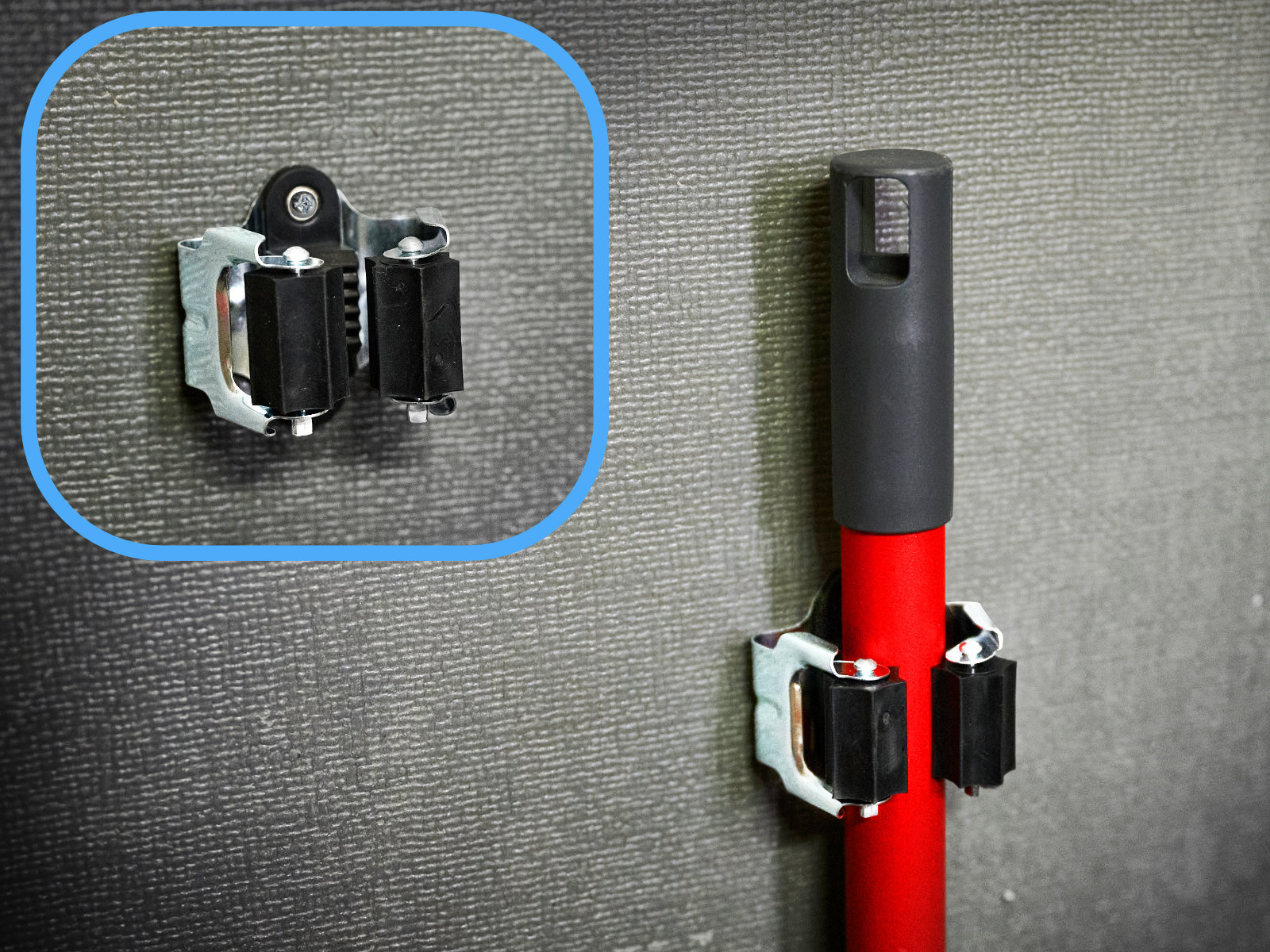Der universelle Wandhalter findet in jedem Haushalt, in der Werkstatt oder im Büro seine Verwendung. Er ist ideal, um Mopps oder Besen unter Kontrolle zu halten. Auch in der Werkstatt ist er ideal als Halter für Schraubendreher, Schlüssel und andere Werkzeuge.