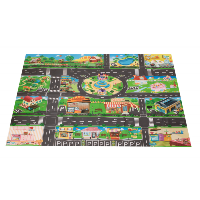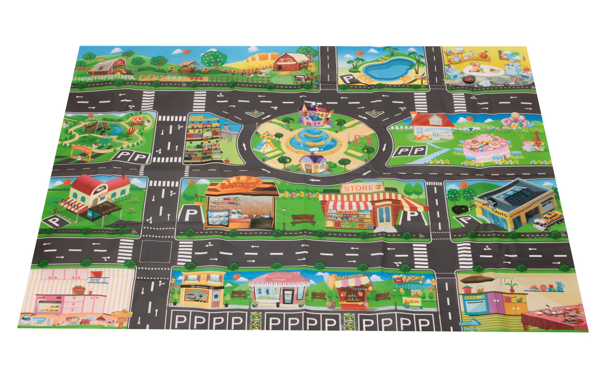 Große wasserdichte Babymatte mit Stadtdesign.
