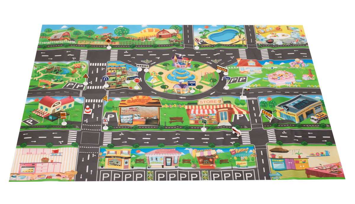 Die Matte hilft Ihnen, die Grundregeln des Straßenverkehrs zu lernen.