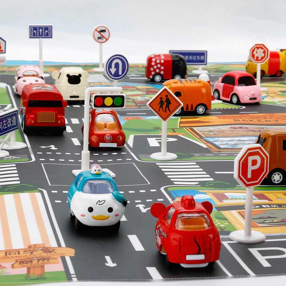Verschiedene Straßenschilder sind enthalten, so dass das Kind seine eigene Stadt gestalten kann.