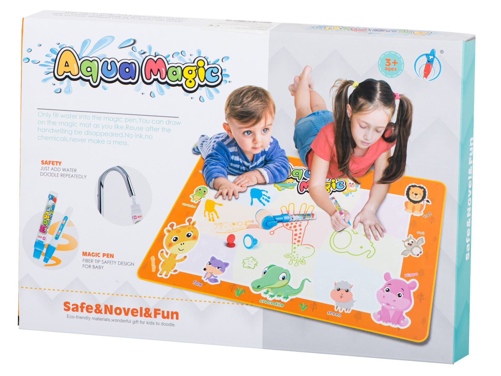 Du brauchst keine Buntstifte, Marker oder Farben, um auf der Matte zu malen. Füllen Sie einfach den im Set enthaltenen Marker mit Wasser.