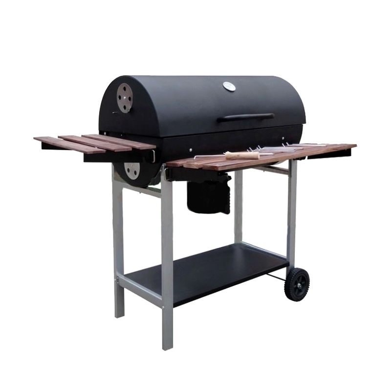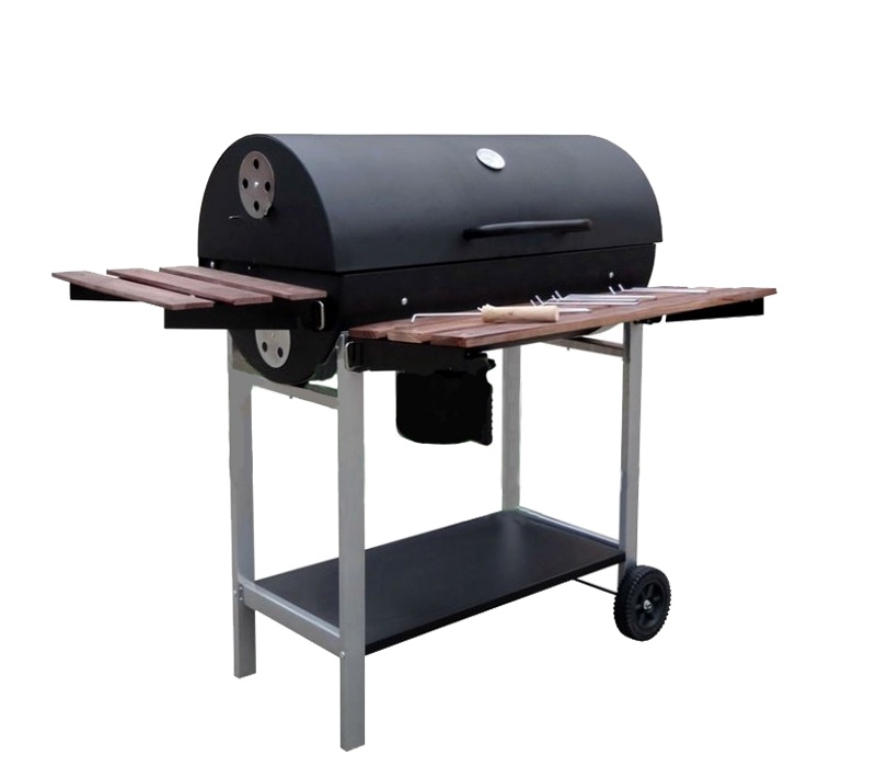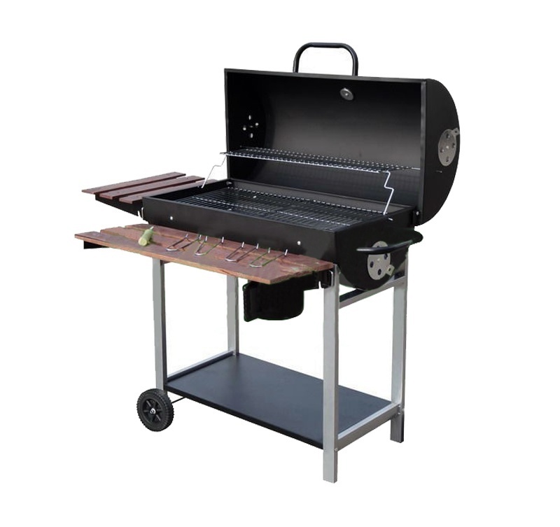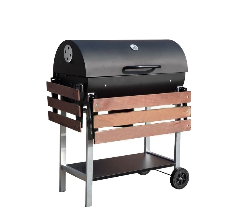 Der geräumige Grillrost und die zwei Holzablagen sorgen für echten Komfort beim Grillen.Der Grill ist zur besseren Handhabung mit Rollen ausgestattet.