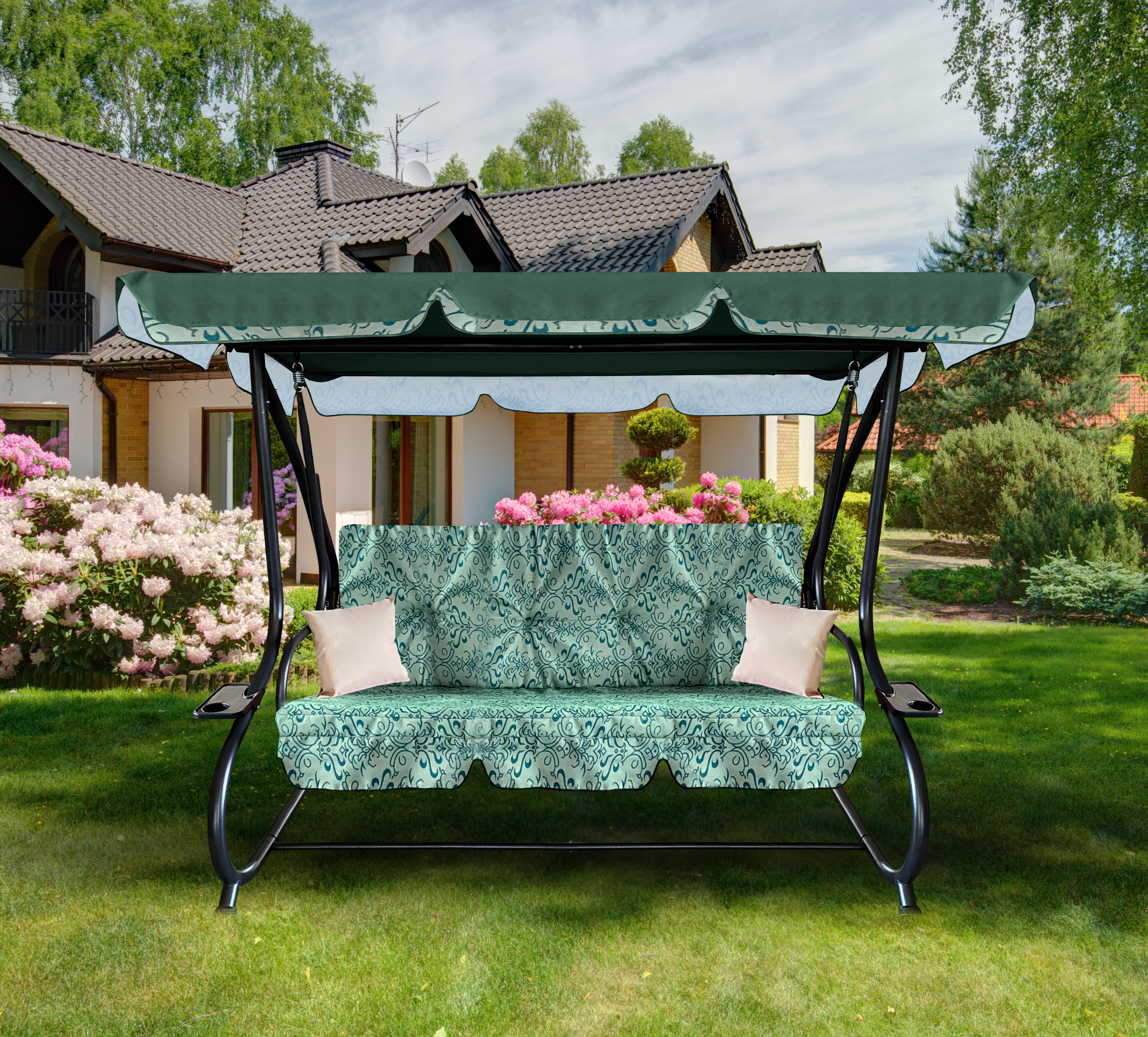Aga Gartenschaukel 2in1 GRANDLUX Gartenschaukel 3-Sitzer Gartenliege,Schaukel,Gartenbank bis 250 Kg Prestige Grün