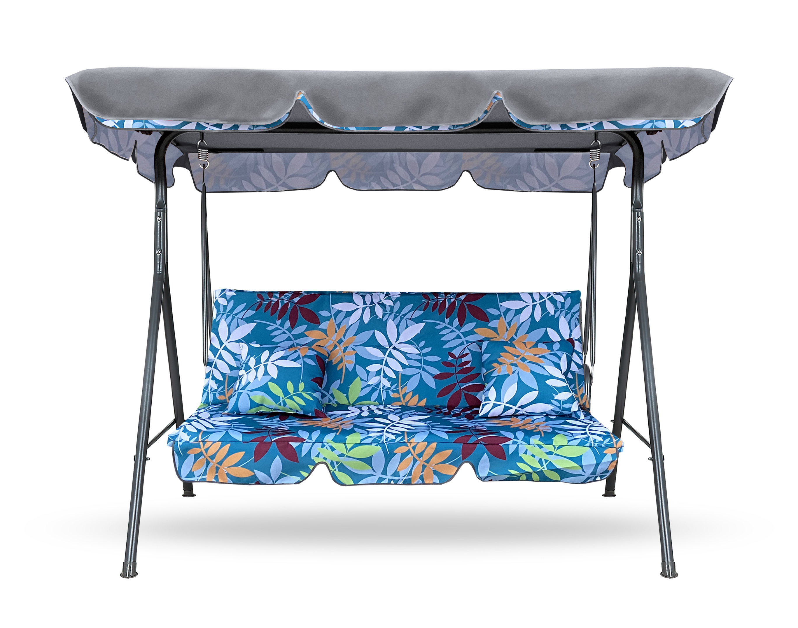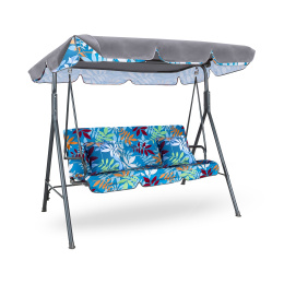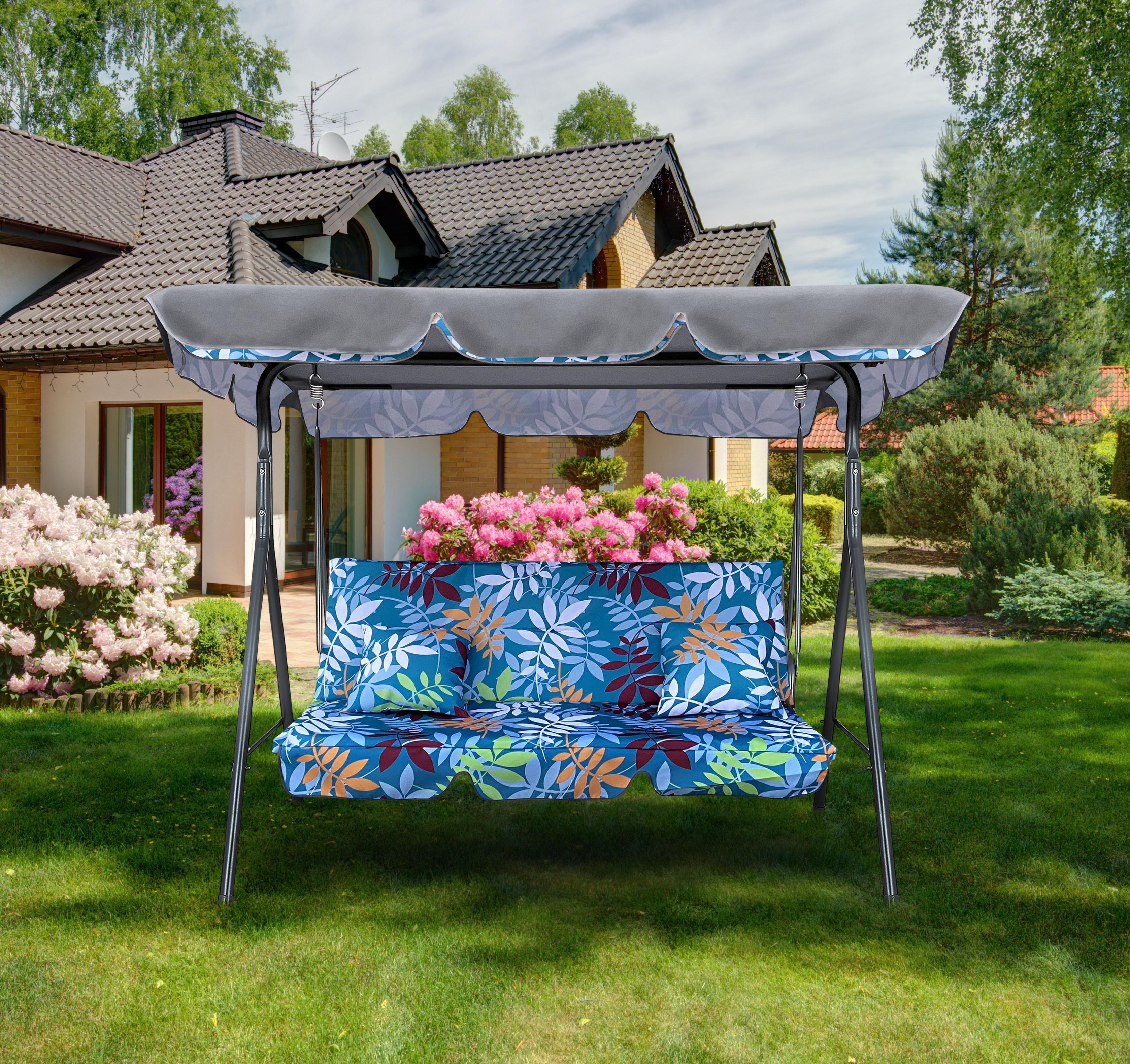Aga MAJKA Hollywoodschaukel Blume Grün, Gartenschaukel 200 kg belastbar, 3-Sitzer mit Dach & Sitzauflage, Hängeschaukel, Schaukelbank für Garten - Terrasse