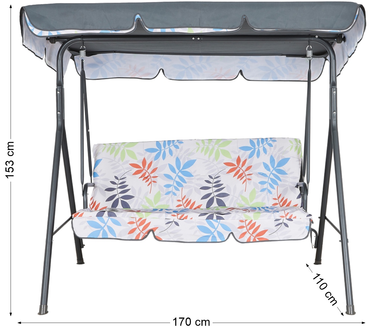 Die Schaukel ist mit einem praktischen kippbaren Baldachin ausgestattet, der als Schattenspender für die Sonne dient.