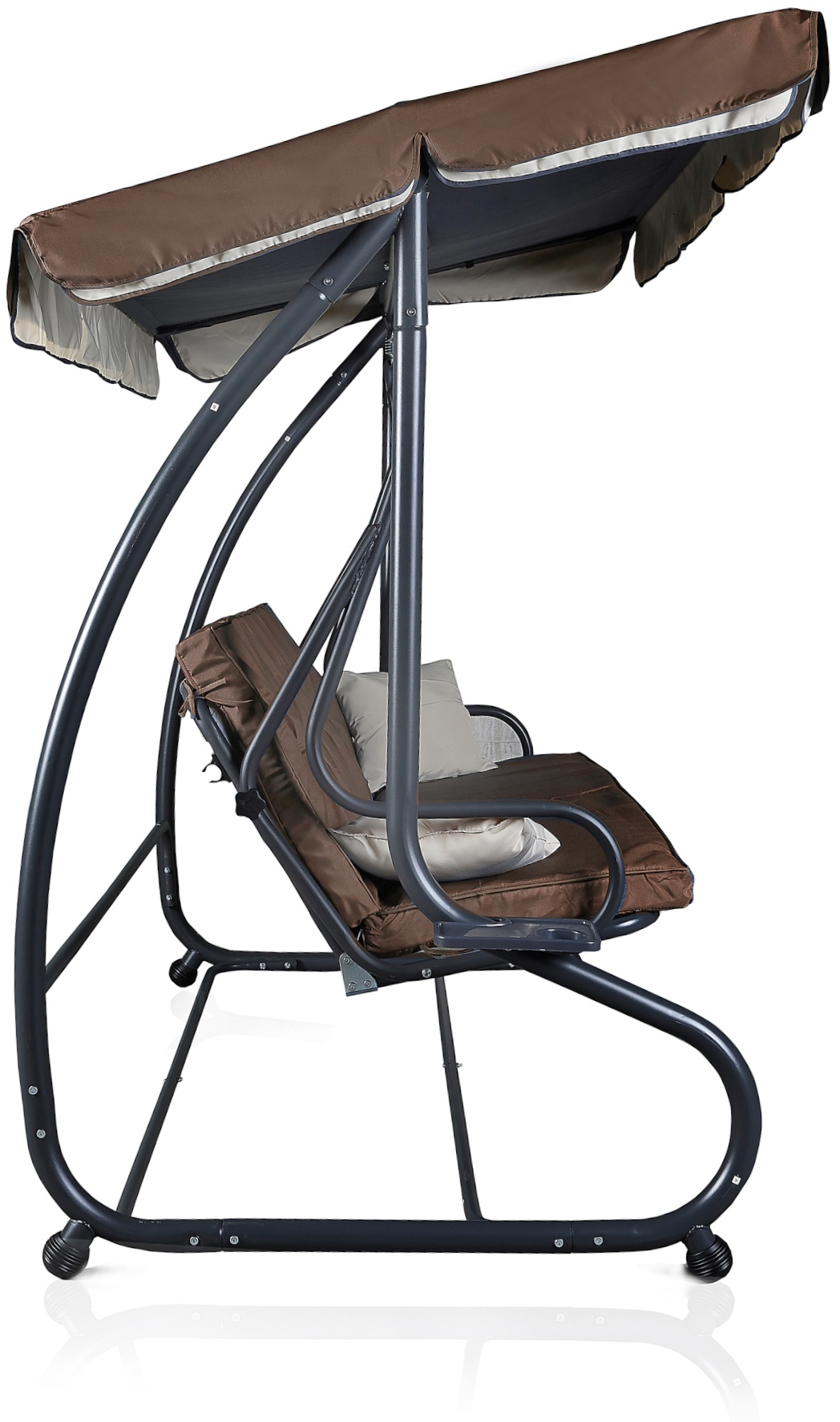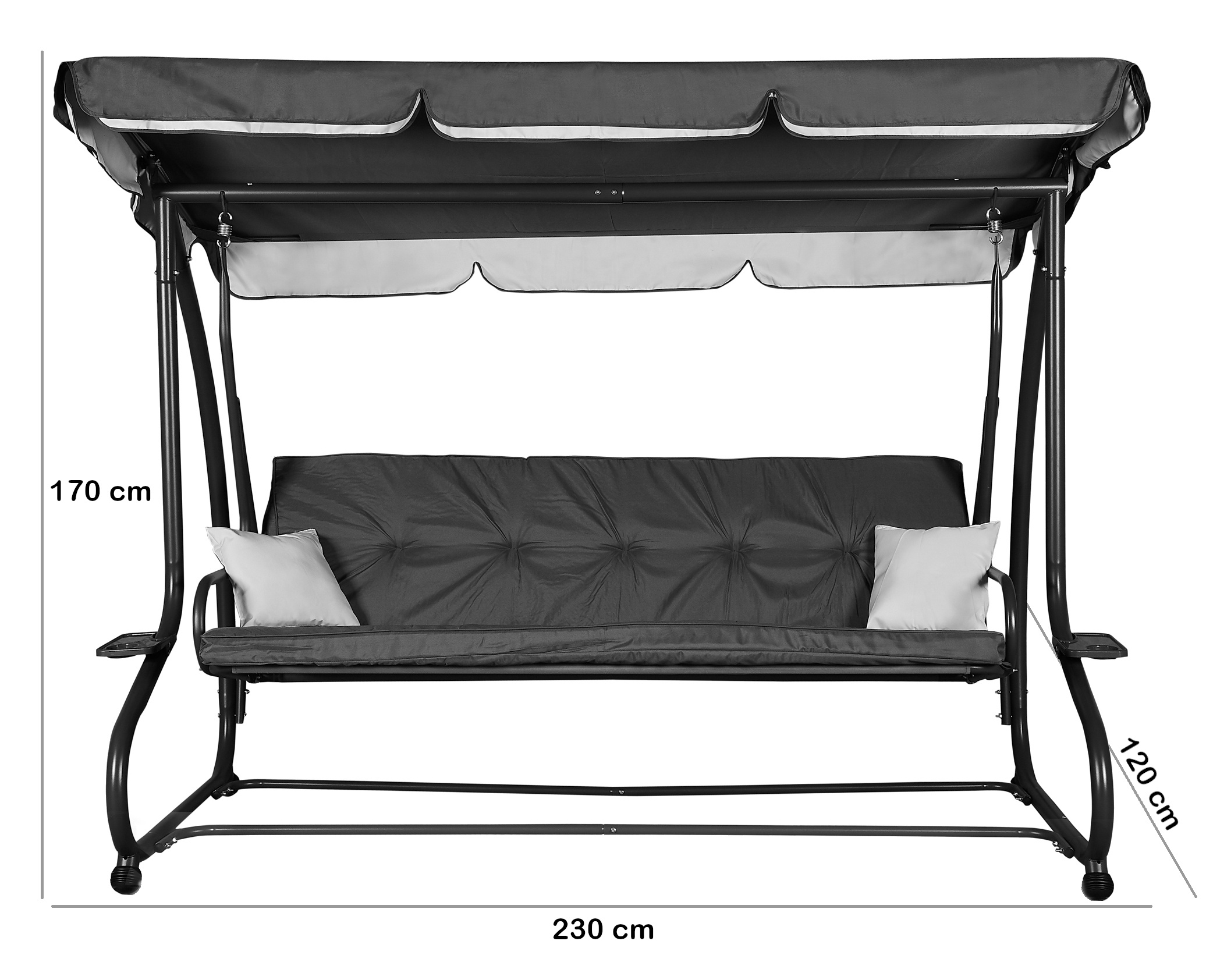 Die Schaukel ist geräumig und bequem genug für 3 bis 4 Personen und kann durch Umklappen der Rückenlehne leicht in eine bequeme Liege verwandelt werden. Gum Anti-Rutsch-Füße auf soliden Beinen garantieren die nötige Stabilität.