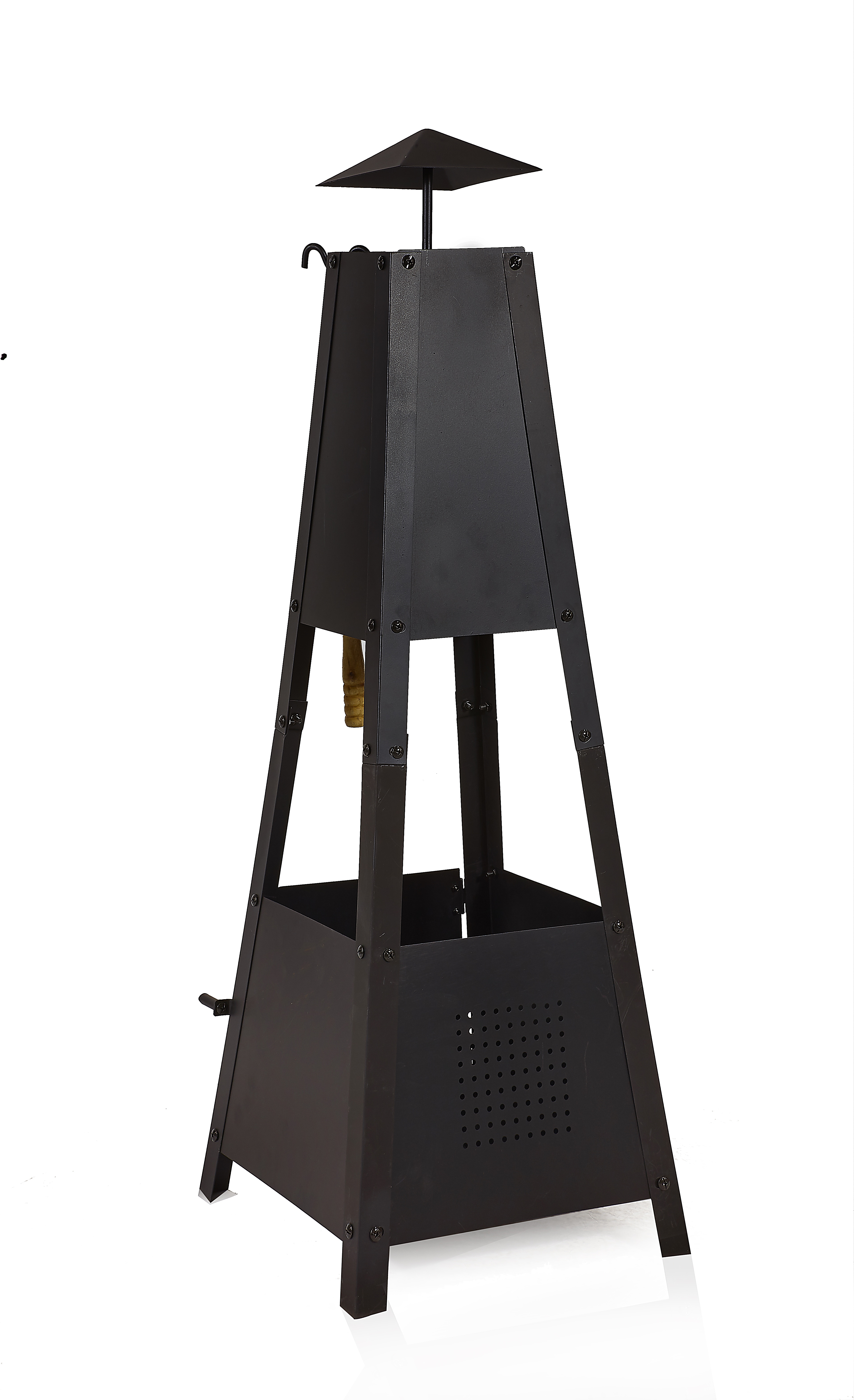 Er verbreitet angenehme Wärme mit hoher Geschwindigkeit und bietet schöne Flammen. Zünden Sie einfach die Kohle, das Holz oder die Holzkohle im Inneren an und Sie können die Wärme und das Feuer stundenlang genießen.
