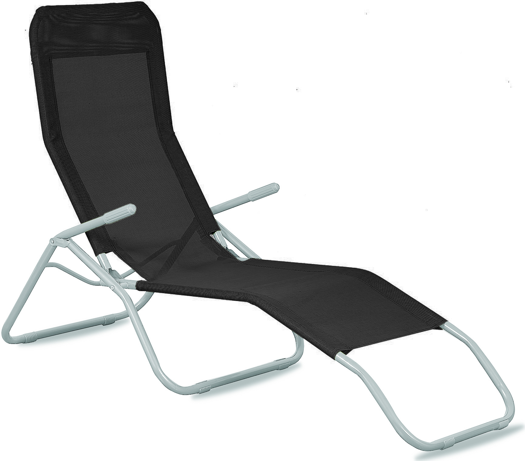 Die Liege Siesta mit Armlehnen ist ein praktisches, modernes Gartenmöbel, ideal für komfortable Entspannung in jedem Garten.