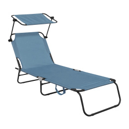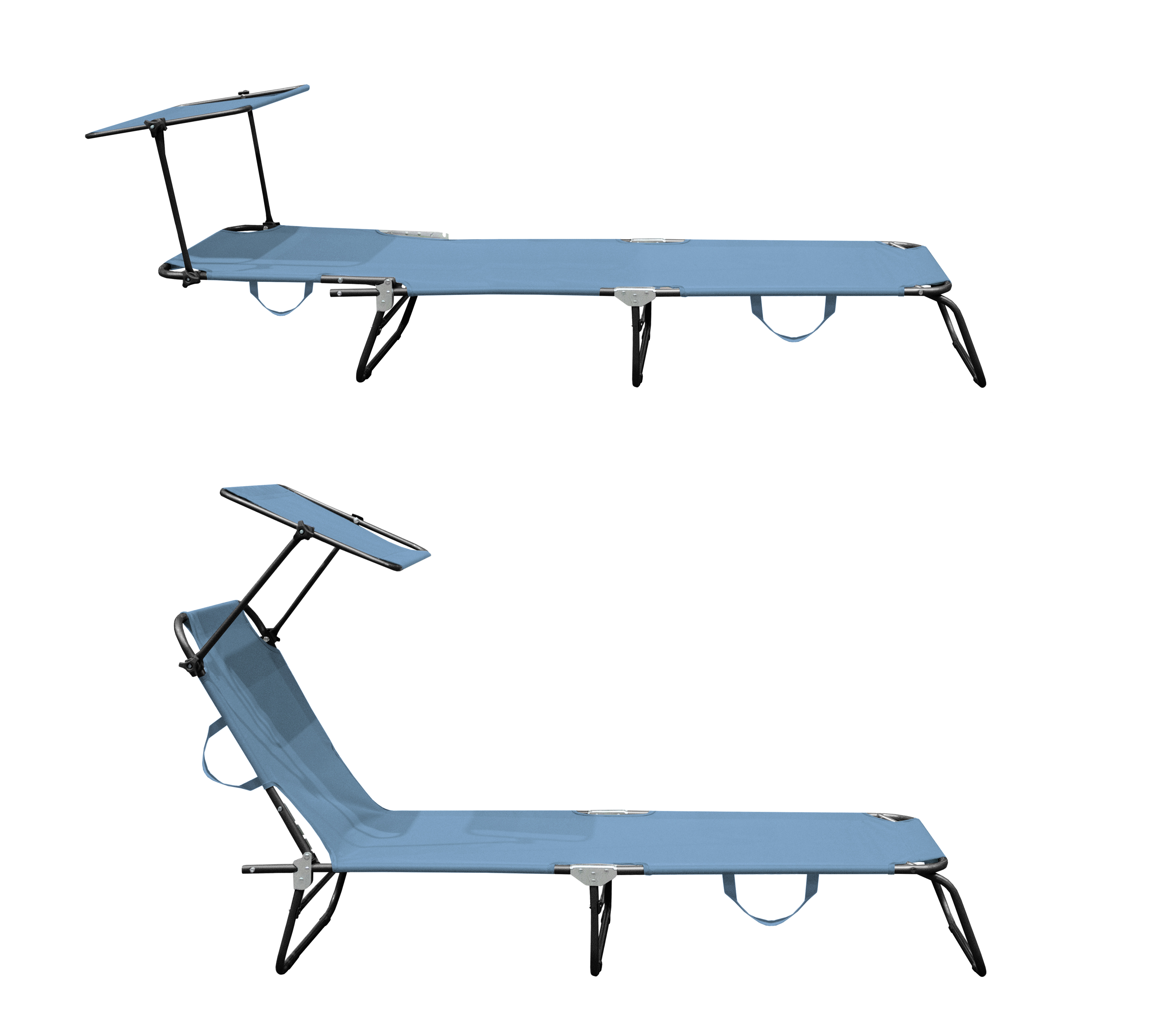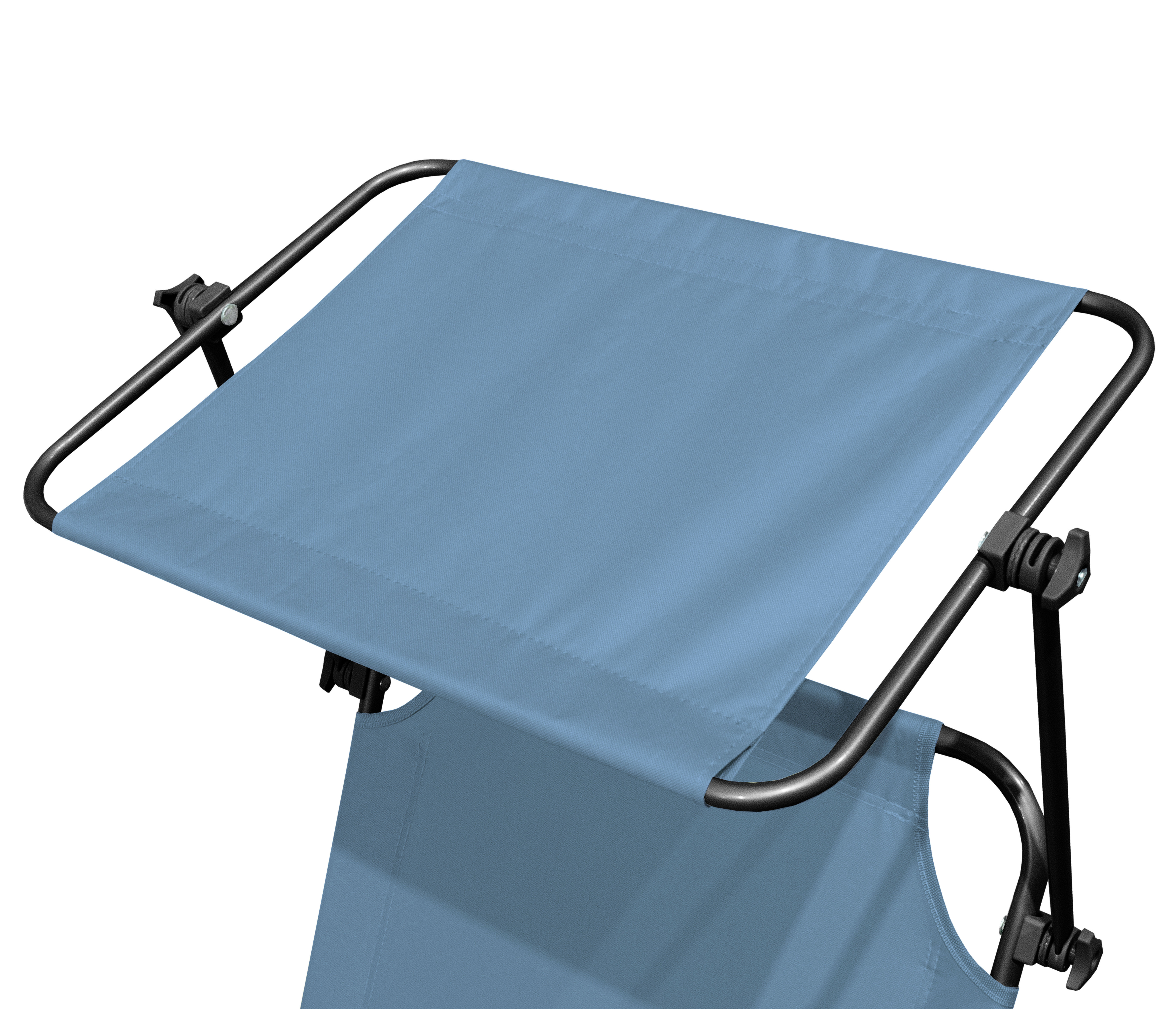 Zum Liegestuhl gehört ein abnehmbares Verdeck, das beliebig eingestellt werden kann und das Gesicht vor der grellen Sonne schützt.Die Rückenlehne der Liege kann in 4 verschiedene Positionen eingestellt werden.