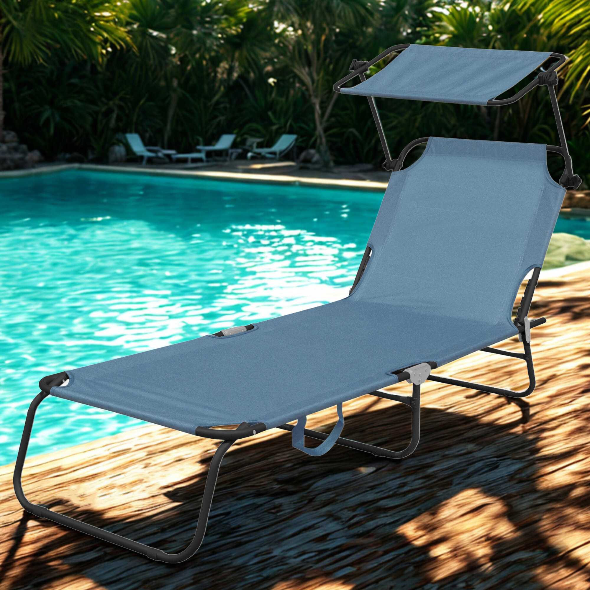 Klappbare Gartenliege mit verstärkter Stahlkonstruktion, in modernem Design, geeignet für Gärten, Camping oder Strände.